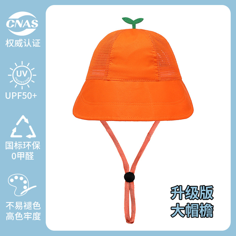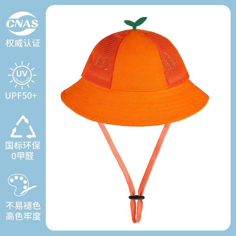 • 주황색 메쉬 작은 녹색 새싹 [귀여운 돔 모자 시리즈] 조절 가능한 방풍 로프