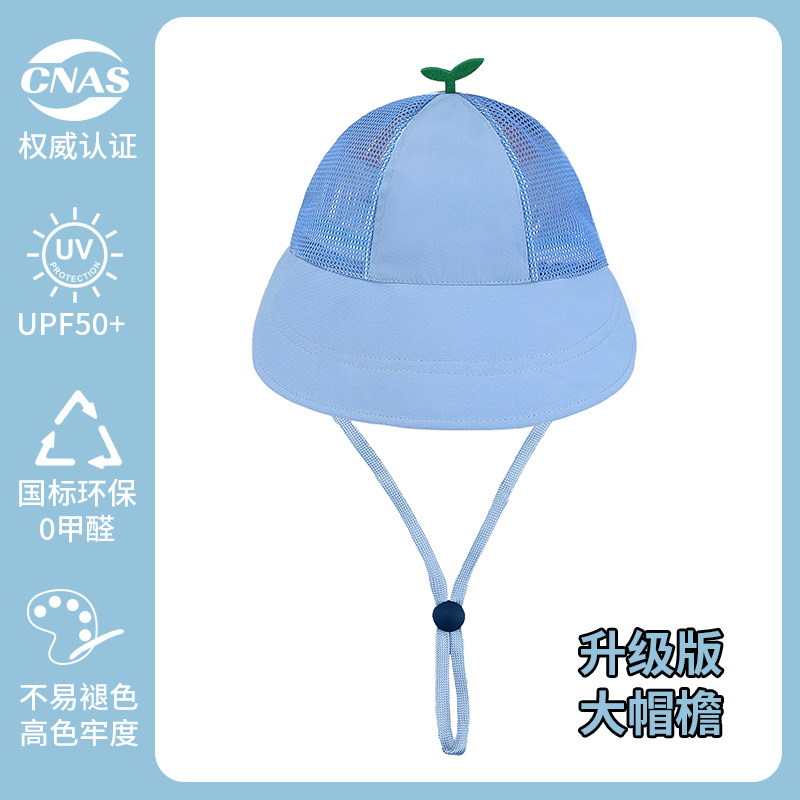 • 하늘색 작은 녹색 새싹 [오리혀 어부 모자 시리즈] 모자 둘레 조절 가능