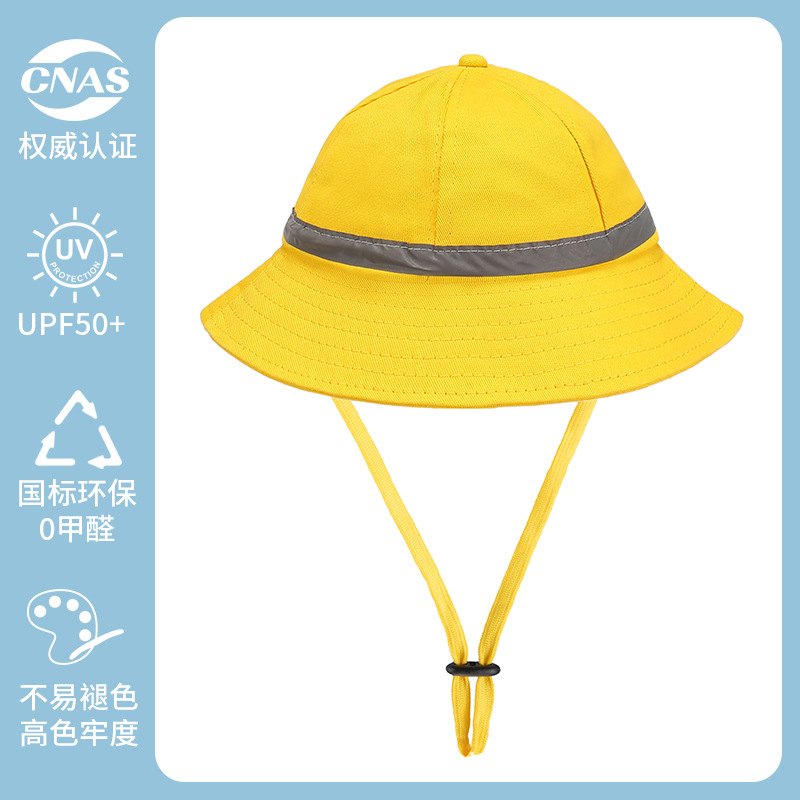 작은 노란색 모자 유치원 모자 고정 로고 인쇄 어부 모자 초등학생을위한 어린이 양산 방지 선 스크린 모자