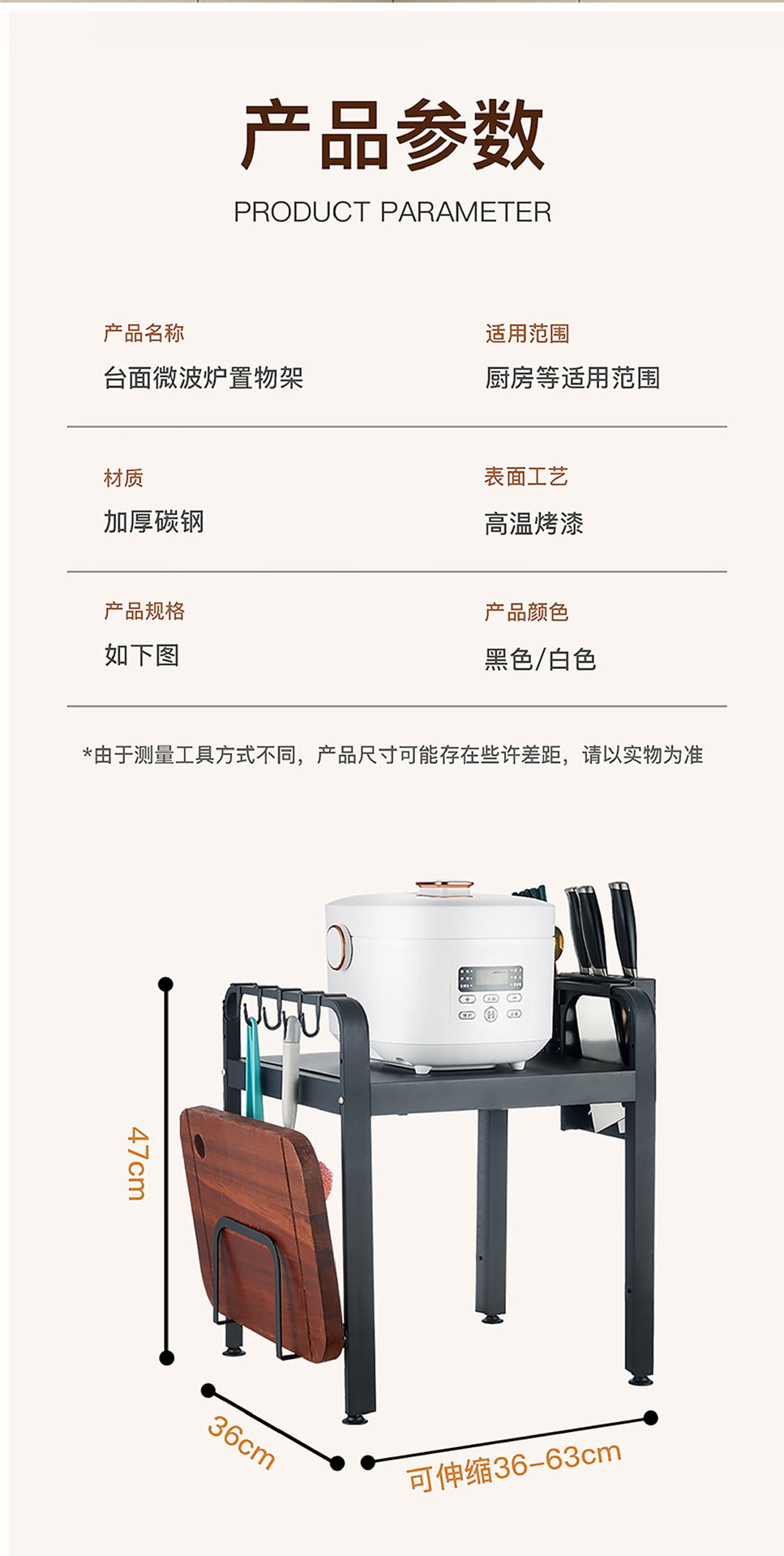 • [나이프 젓가락 랙 + 도마 랙] + 후크 6 개로 가득 찬 무광택 블랙 텔레스코픽 싱글 레이어 (39-64)cm
