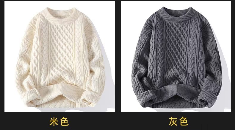겨울 남성 트위스트 스웨터 캐주얼하고 다재다능한 유럽과 미국의 가벼운 성숙한 스타일 솔리드 컬러 스웨터 남성 라운드 넥 풀오버 탑