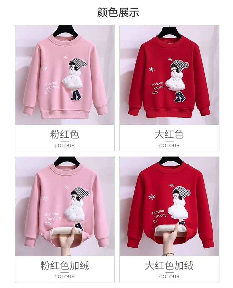 여자 운동복 2024 가을, 겨울 새로운 중대형 어린이 두꺼운 순수 면화 플러스 벨벳 운동복 여자상의 배달스토어 가기