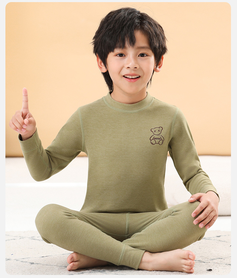 2023 새로운 어린이 열 속옷 세트 소년의 빨간 가을 옷 긴 존스 여아 양면 가정 옷 잠옷