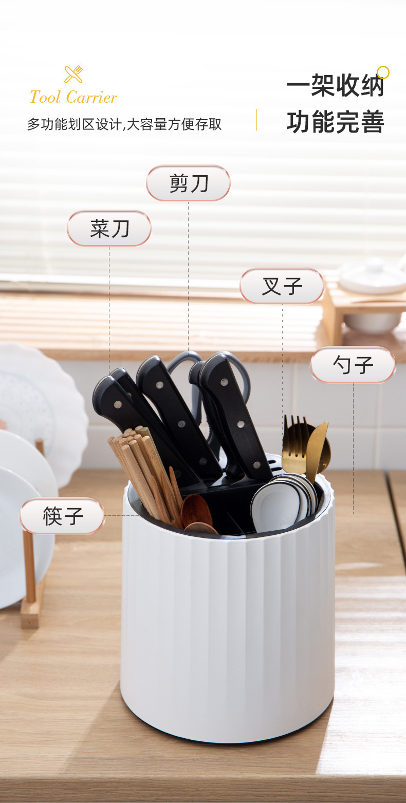 多功能刀架厨房刀具用品置物架筷笼一体收纳架筷子筒壁挂式免打孔 旋转刀架刀具置物架多功能刀具收纳盒家用厨房