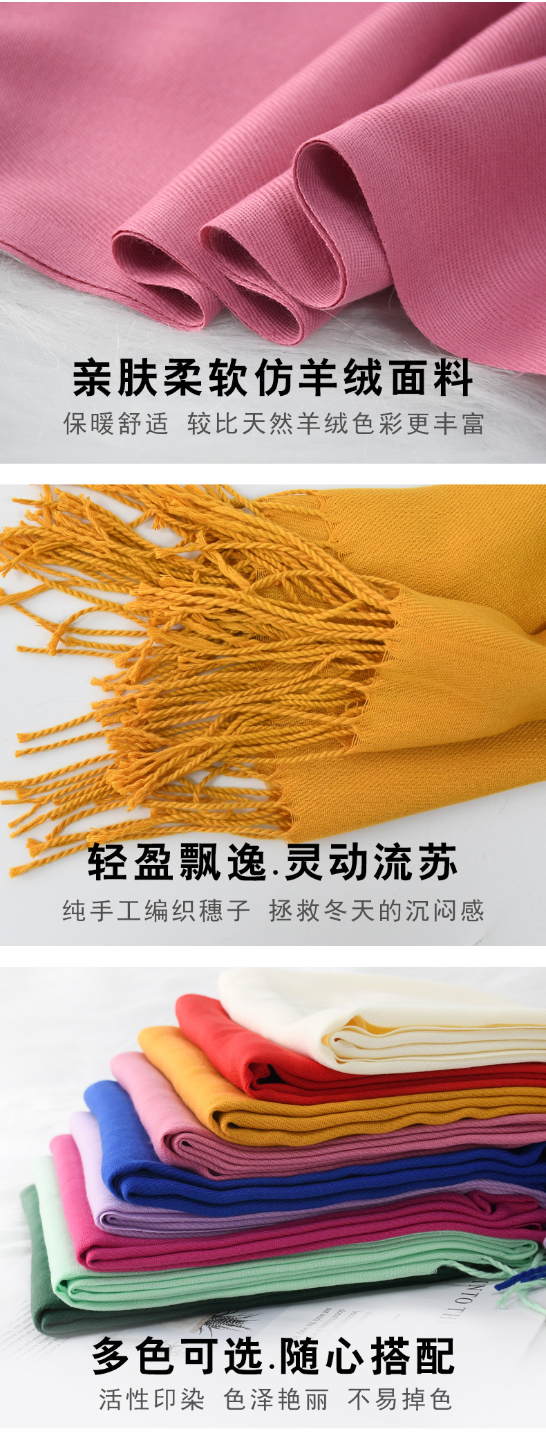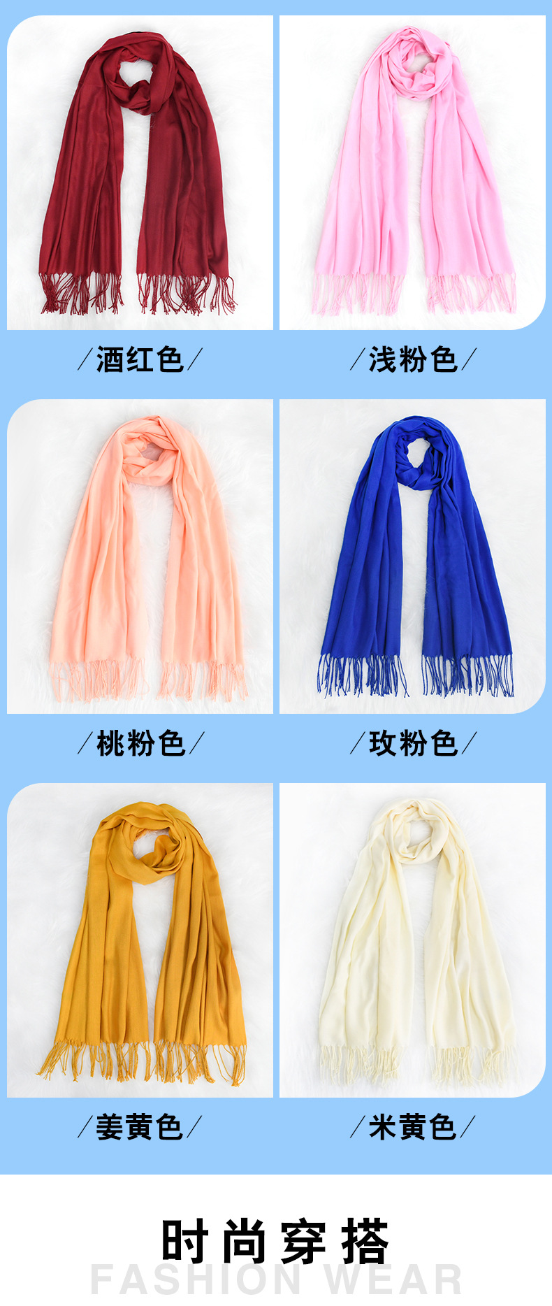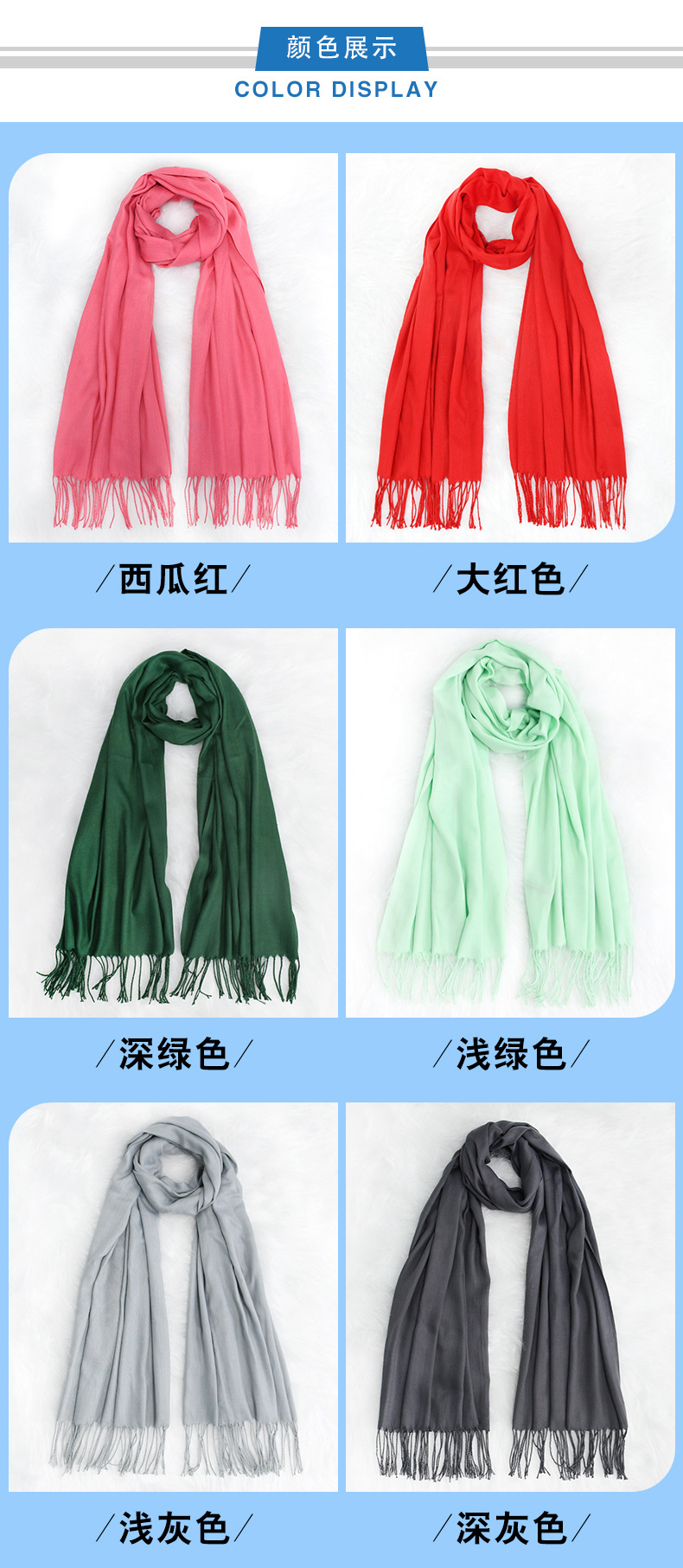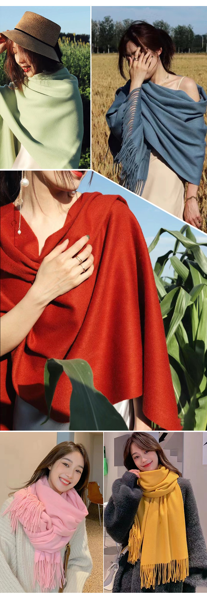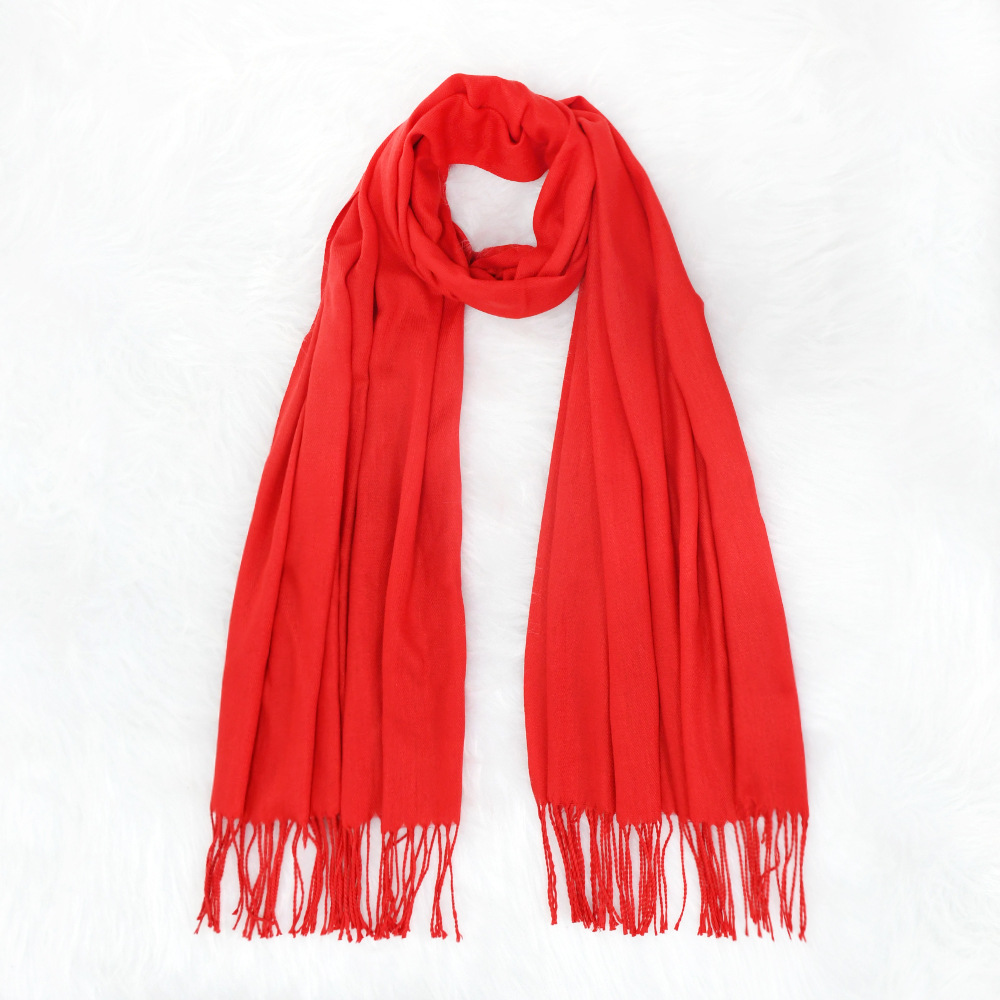 가을/겨울 단색 캐시미어 스카프 여성 레드 연례회 로고 자수 200g 따뜻한 목도리 스카프 도매스토어 가기