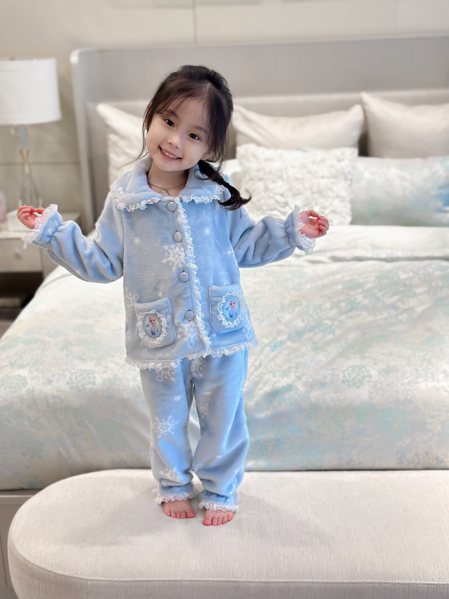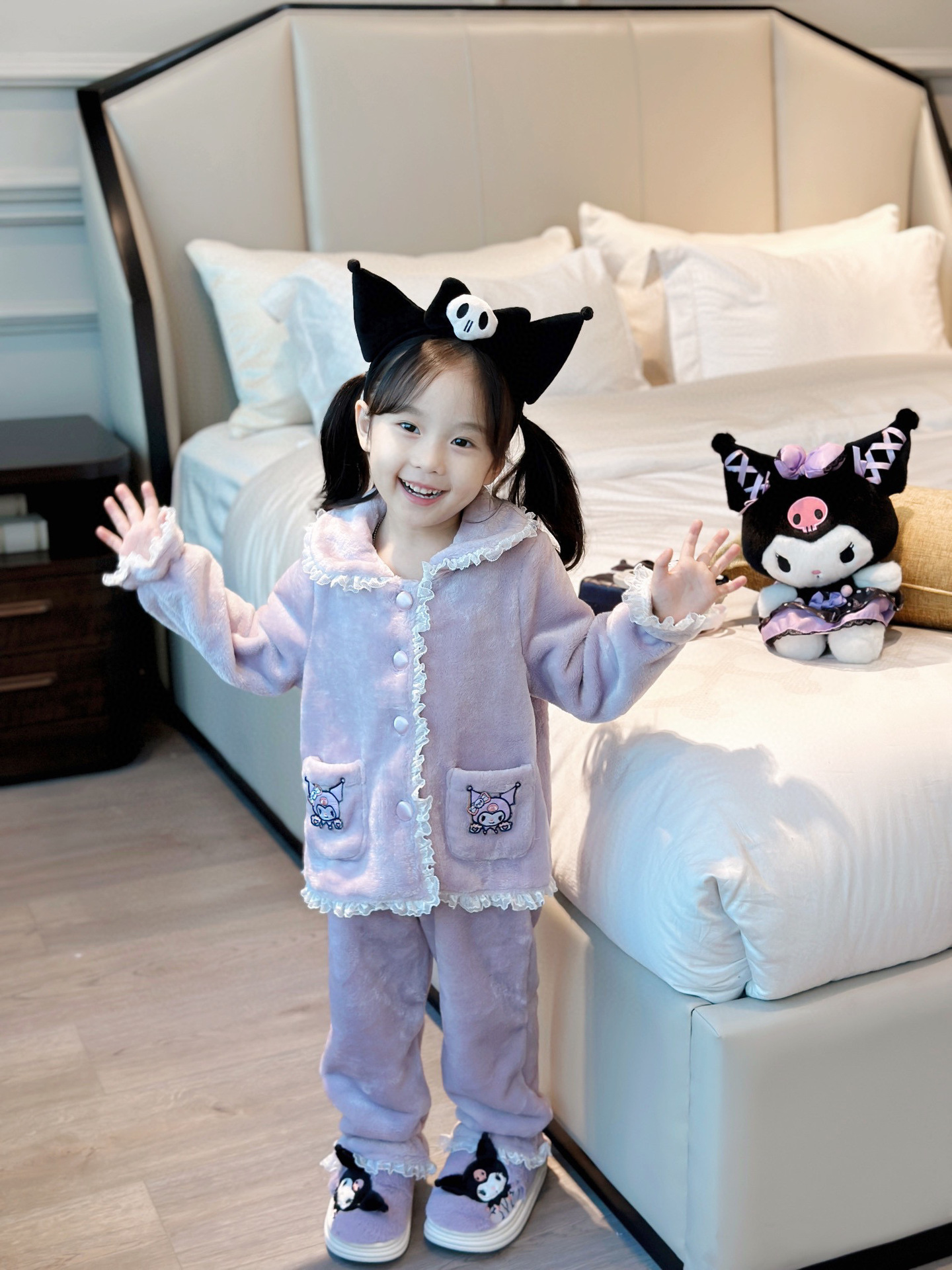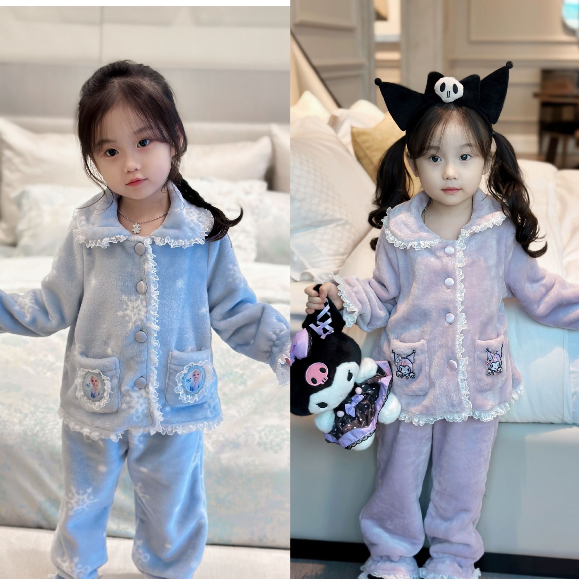 여아용 홈웨어 2023 가을 겨울 신상 플란넬 두꺼운 엘사 쿠로미 만화 캐릭터 보온