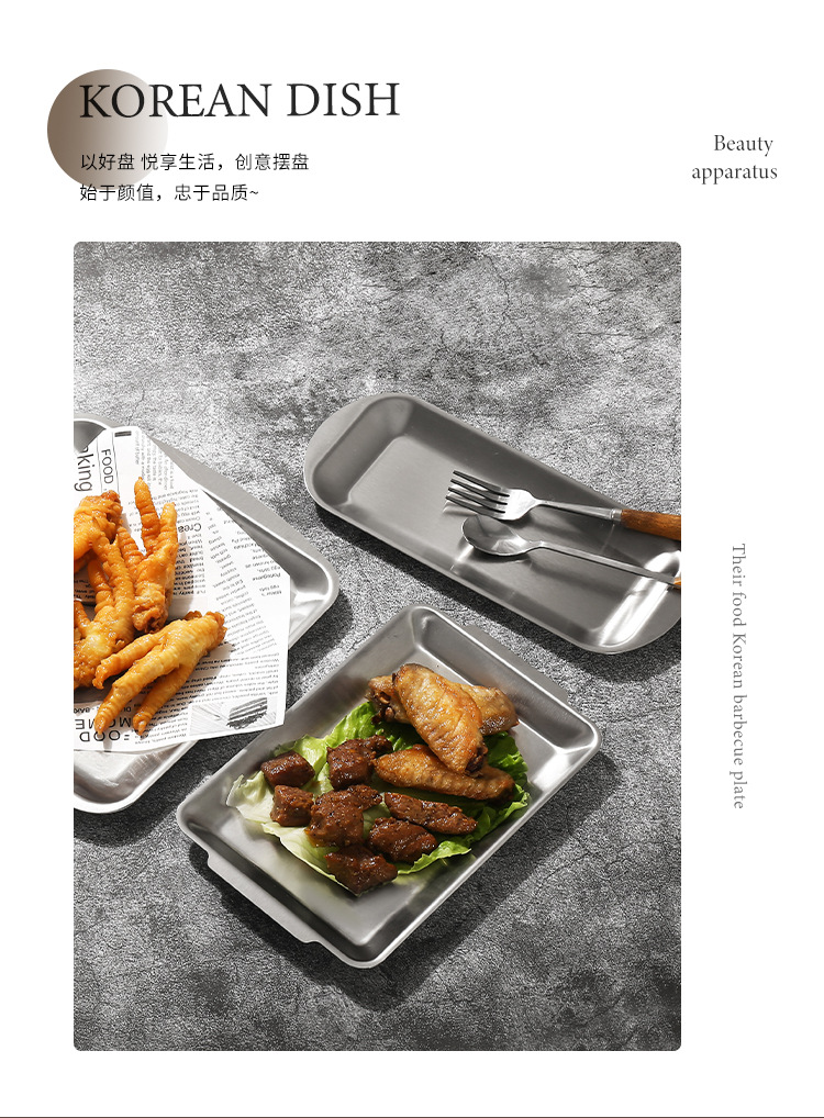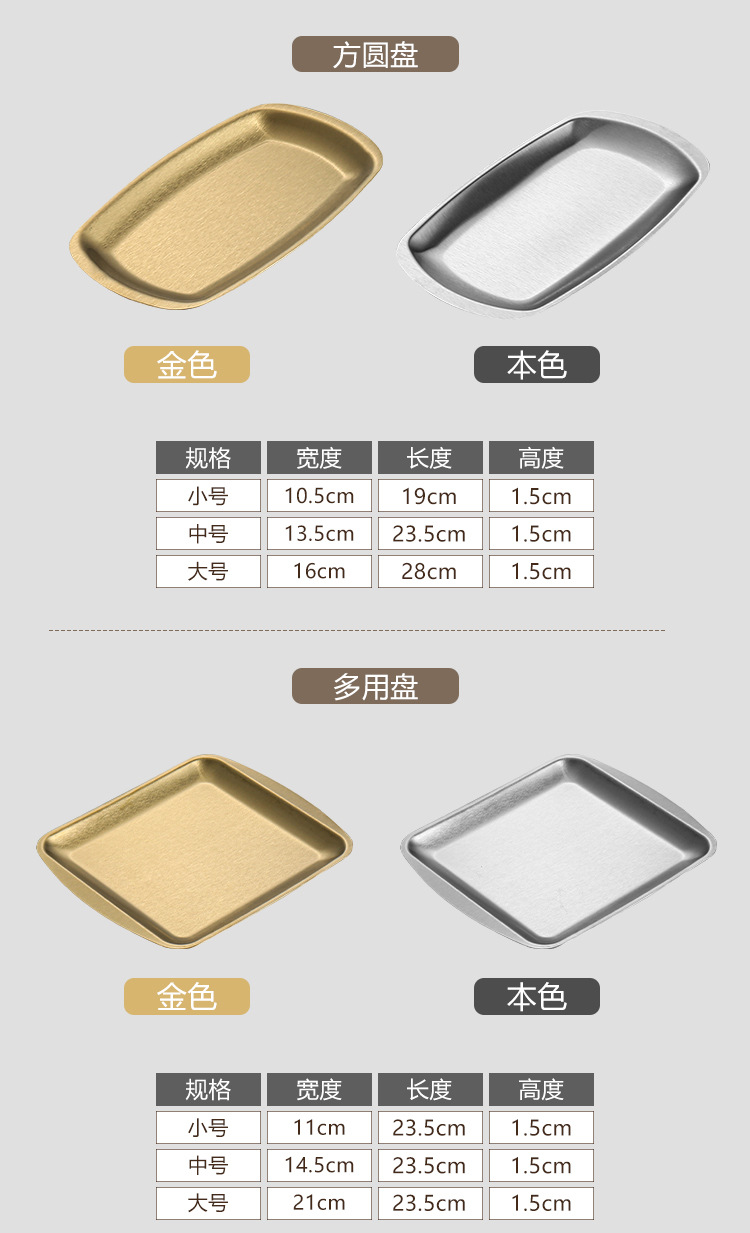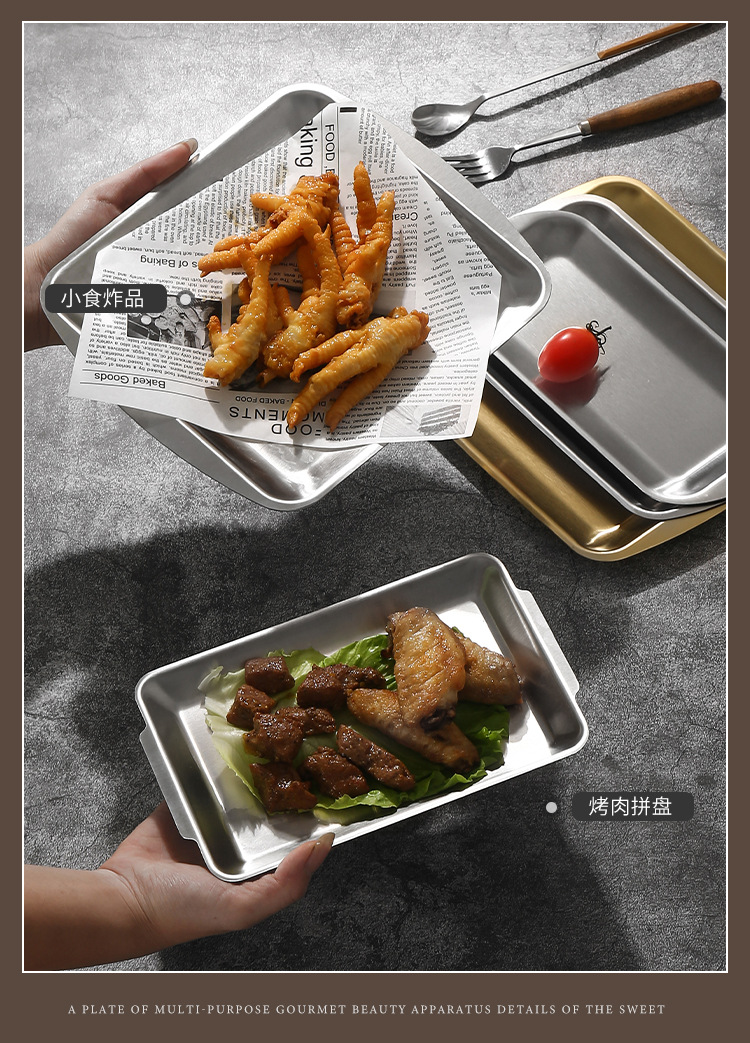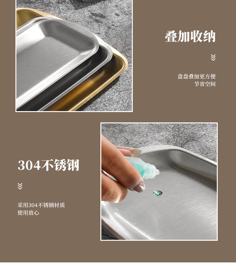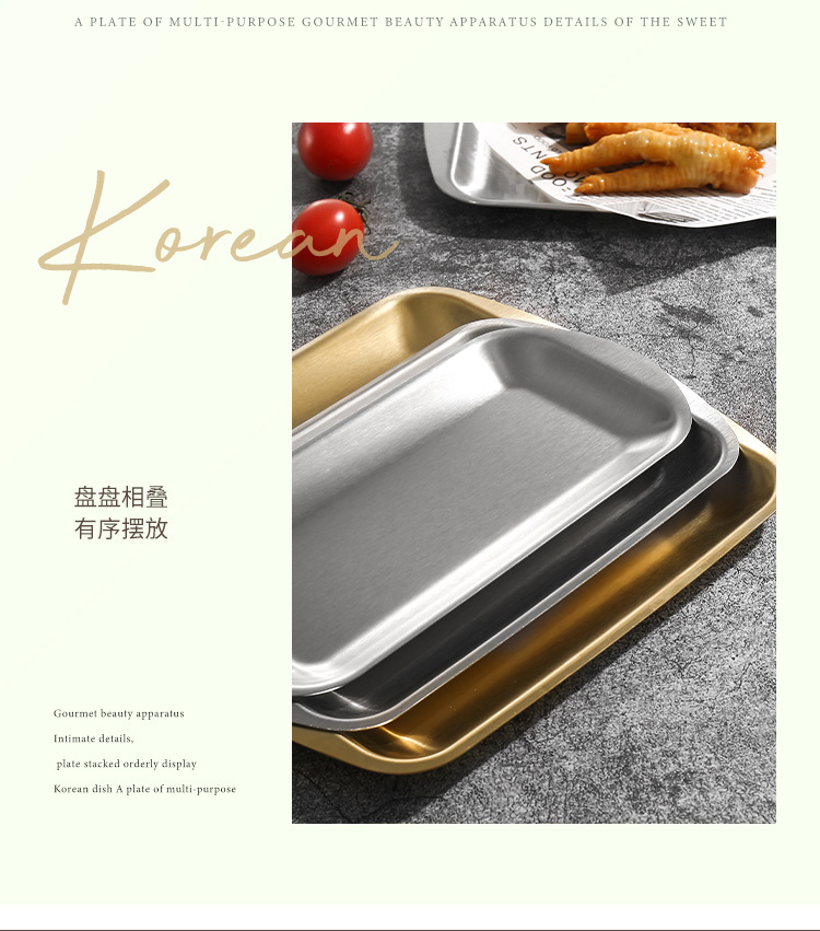진펑 한국식 304 스테인리스 바베큐 플레이트 사각형 금색 트레이 찻잔 보관 가정용 장식품스토어 가기