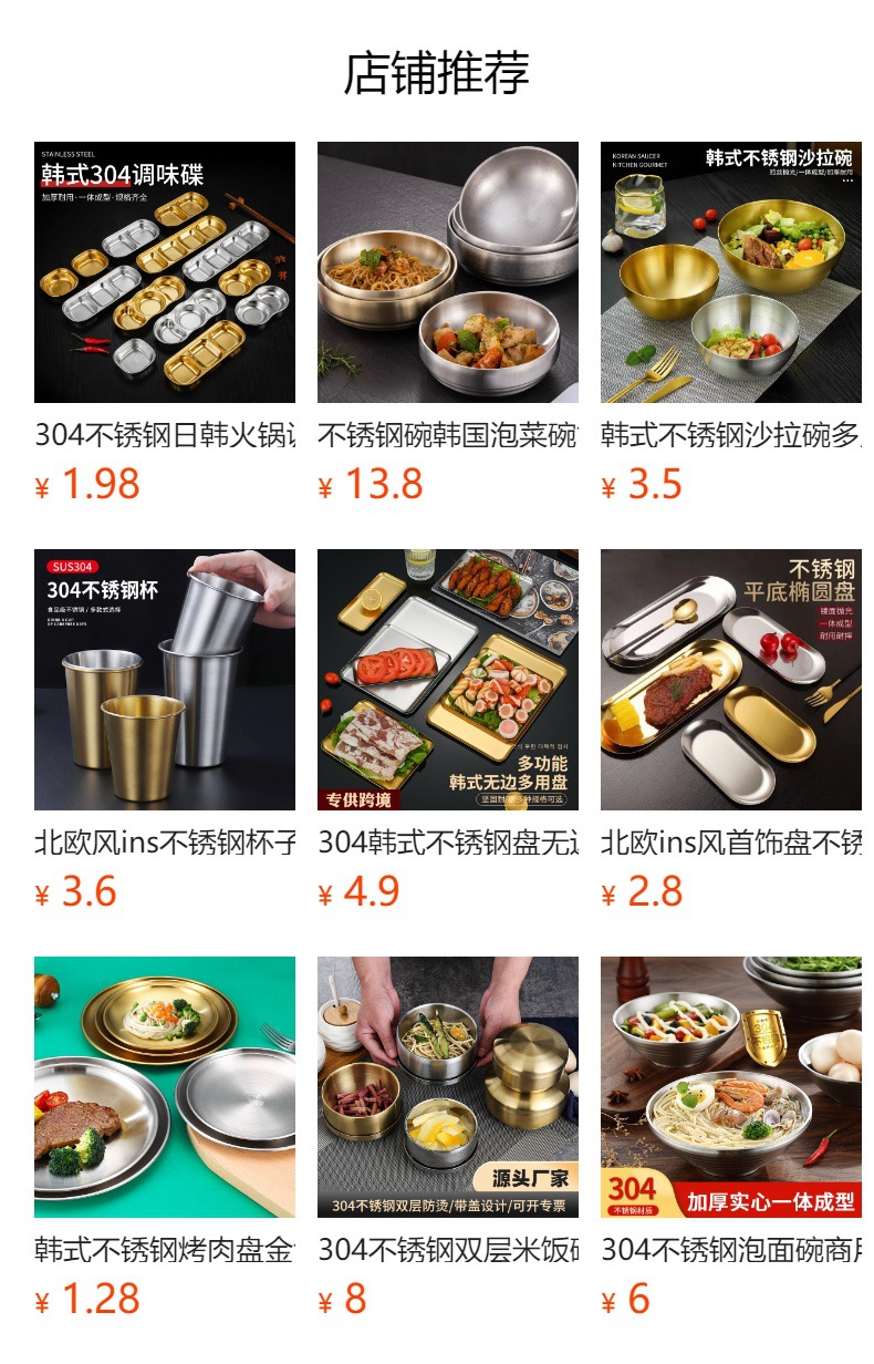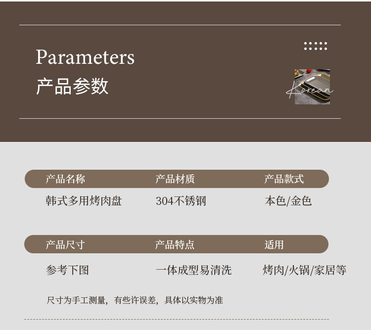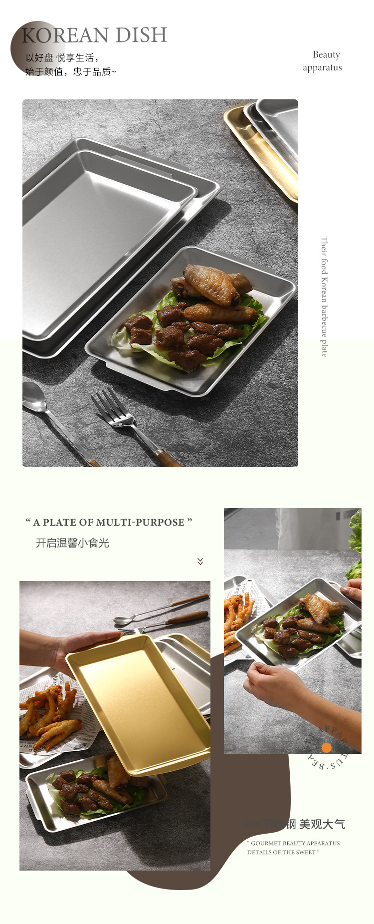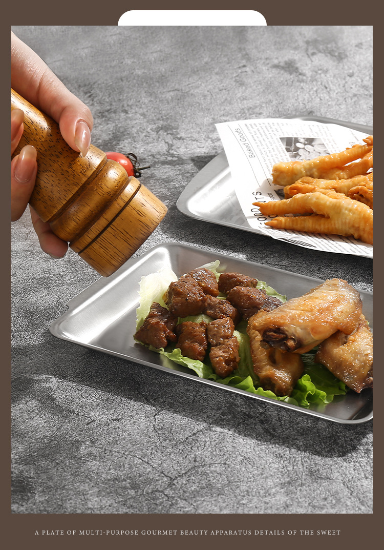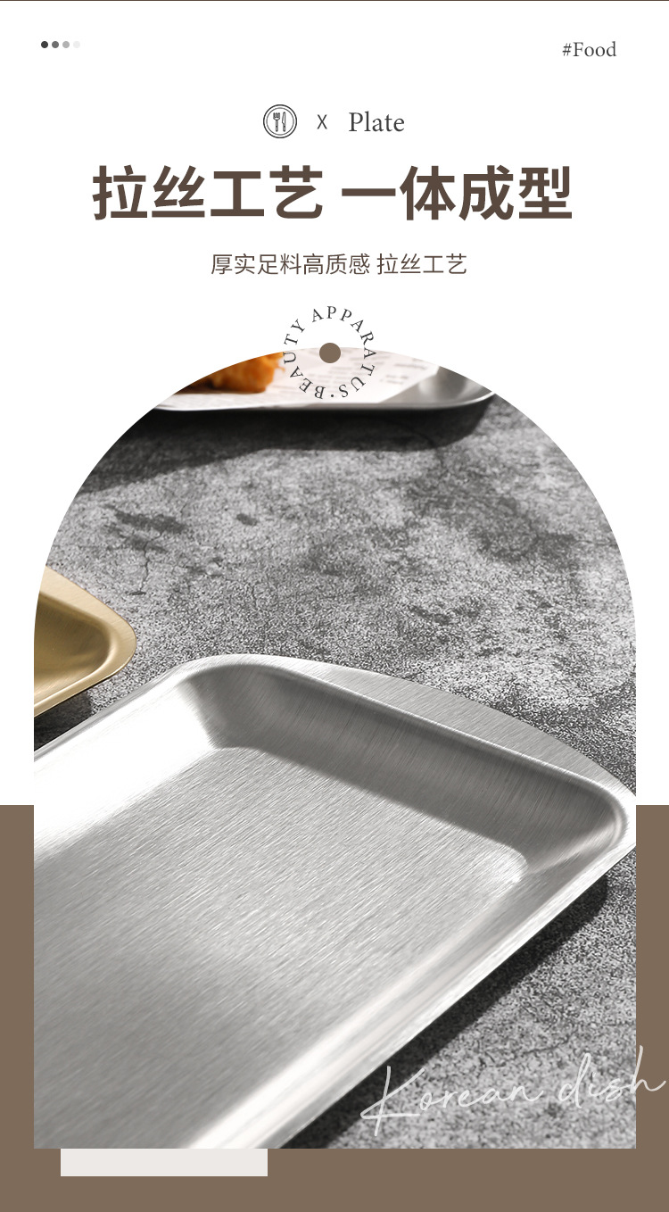 진펑 한국식 304 스테인리스 바베큐 플레이트 사각형 금색 트레이 찻잔 보관 가정용 장식품스토어 가기