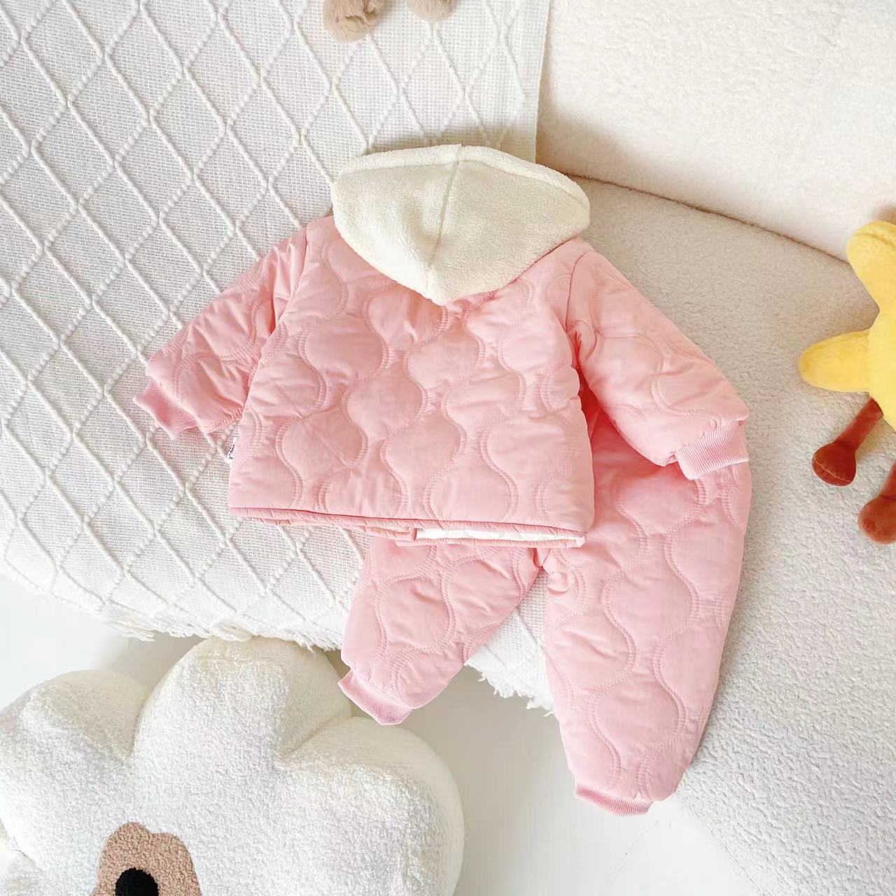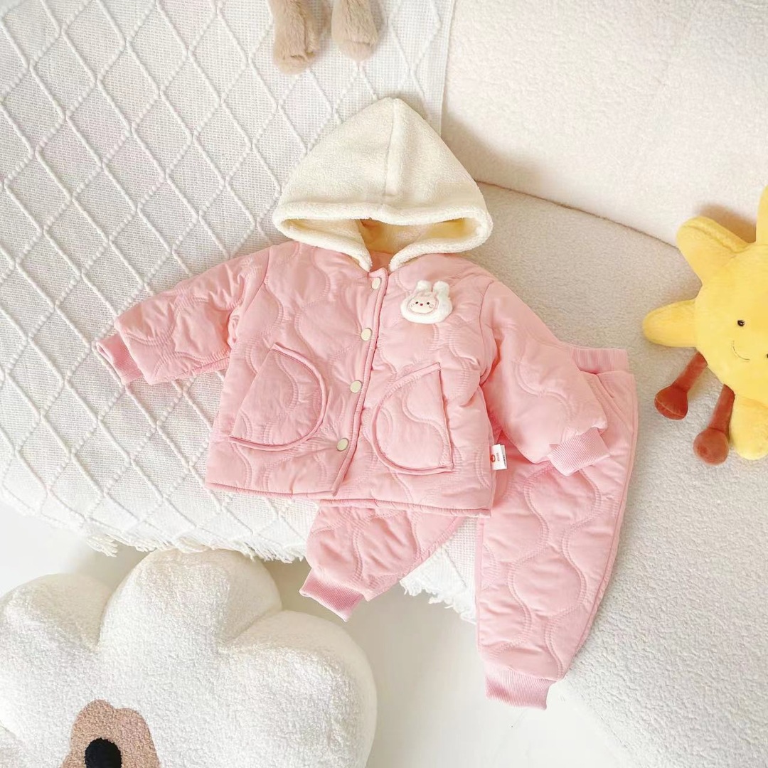 여자 어린이 세트 2023 가을과 겨울 새로운 어린이 세트 어린이 후드 따뜻한 면 패딩 재킷 투피스 세트 머리카락의 세대스토어 가기