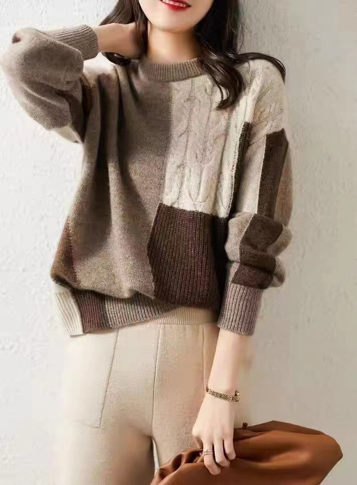트위스트 컬러 매칭 하프 터틀넥 두꺼운 스웨터 여성의 느슨한 겉옷 2023 가을 새로운 유행 우아한베이스 셔츠 트렌디