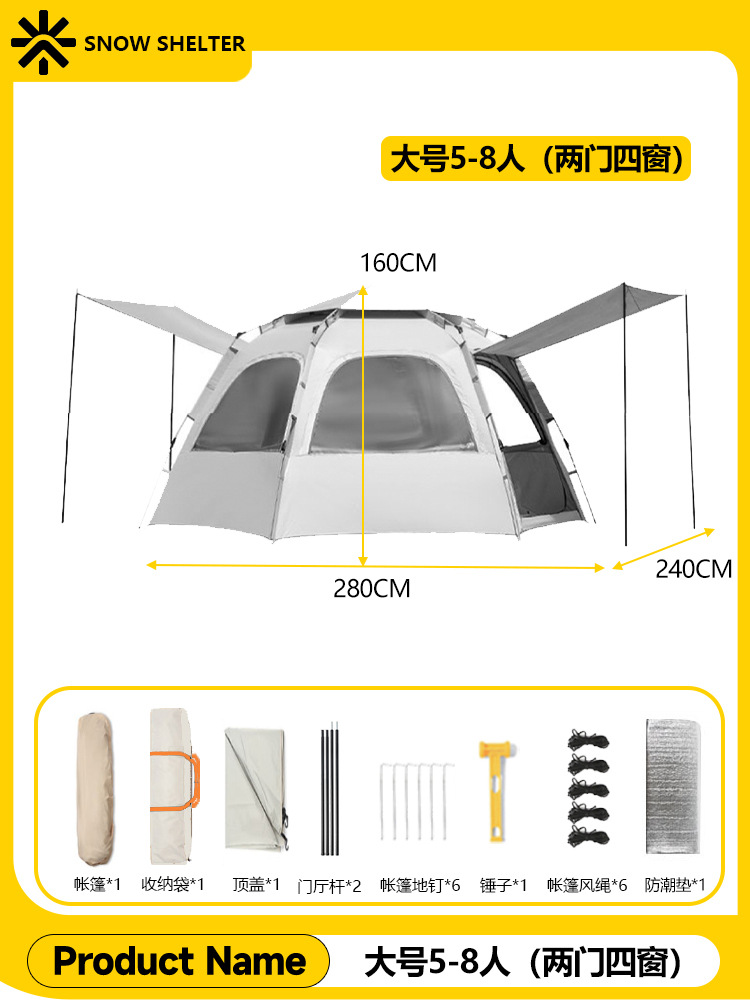완전 자동 육각 텐트 야외 5-8 명 이중 문 휴대용 접이식 캠핑 텐트 두꺼운 재고 도매스토어 가기