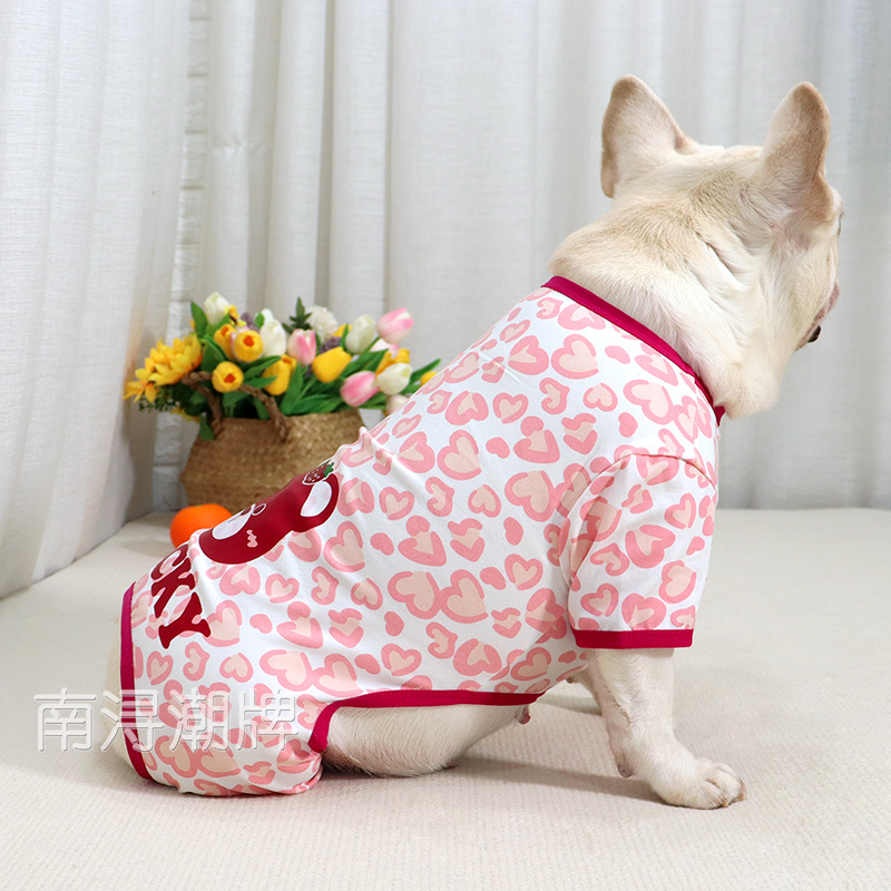 개 옷 가을 새로운 티셔츠 네 발 옷 면 스트레치 딸기 곰 퍼그 개 뚱뚱한 개 애완 동물 용품