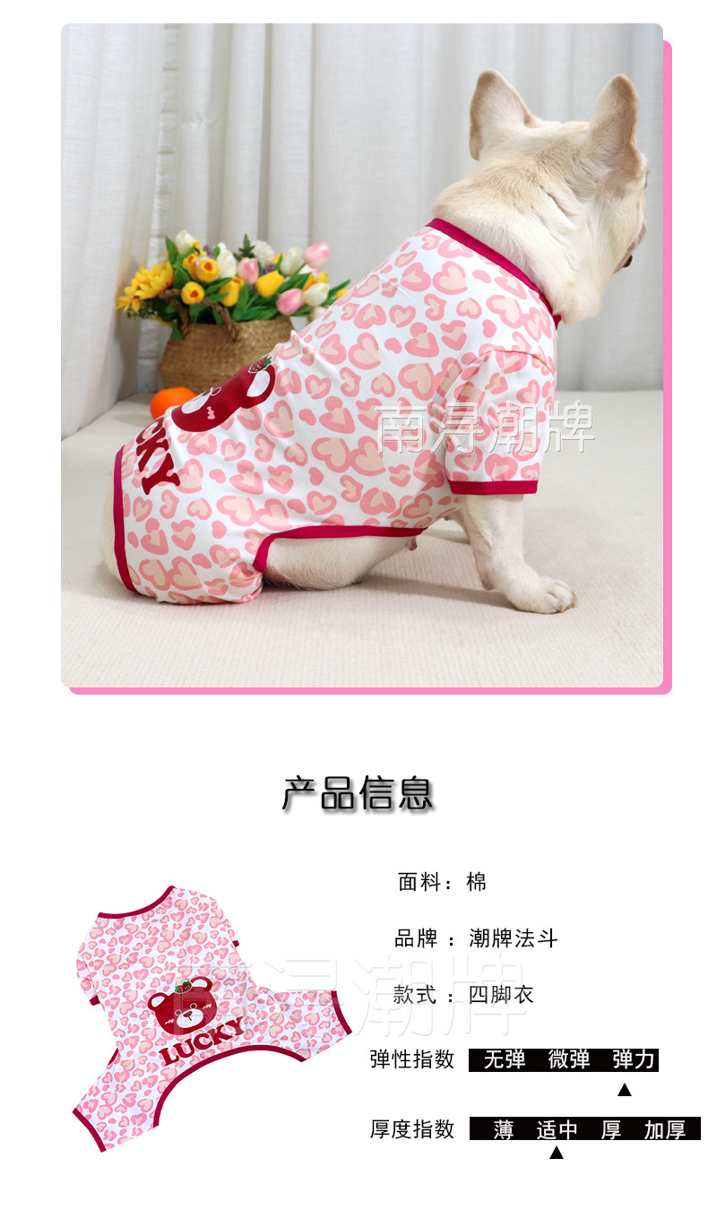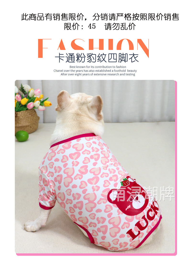 개 옷 가을 새로운 티셔츠 네 발 옷 면 스트레치 딸기 곰 퍼그 개 뚱뚱한 개 애완 동물 용품스토어 가기