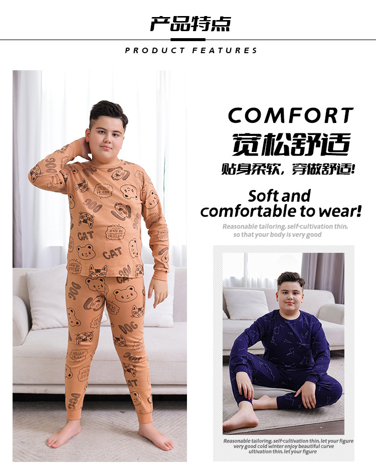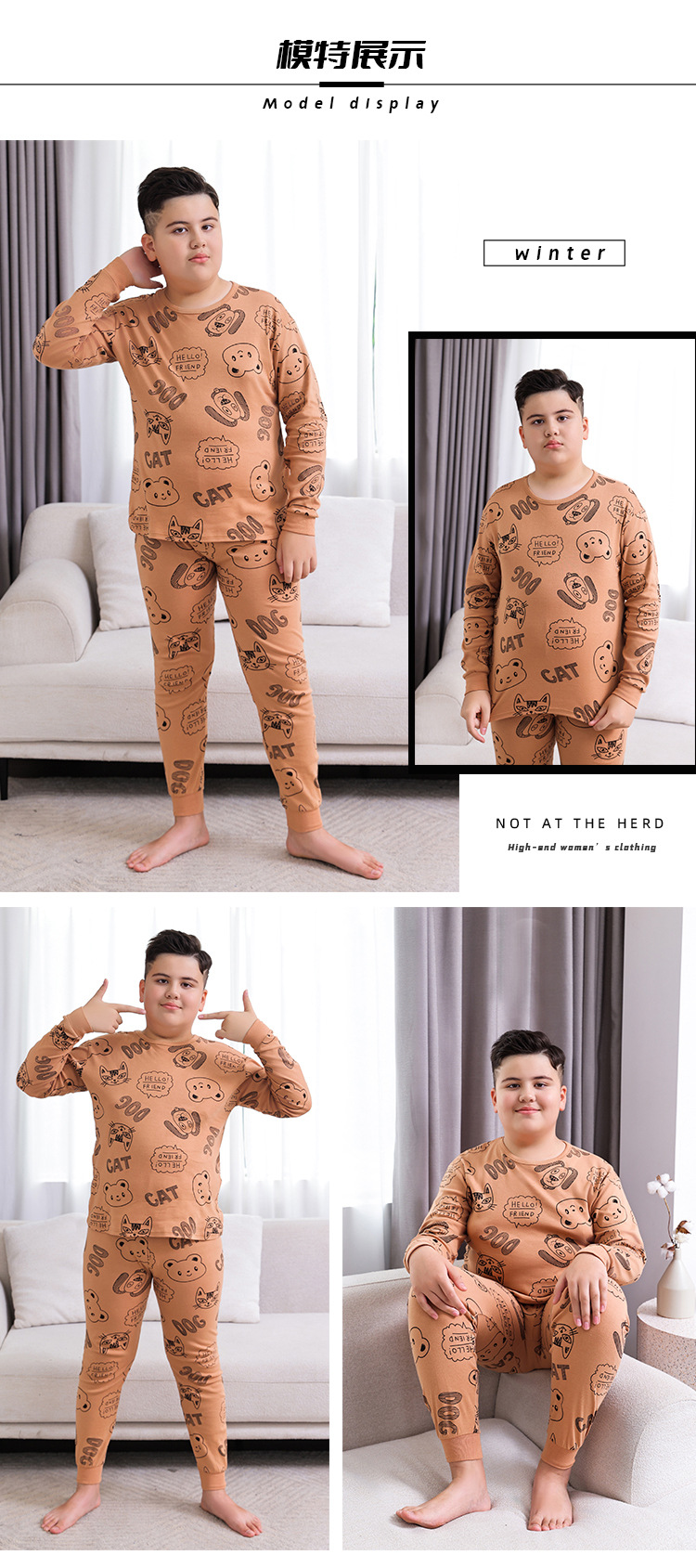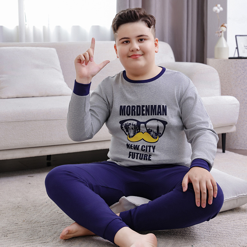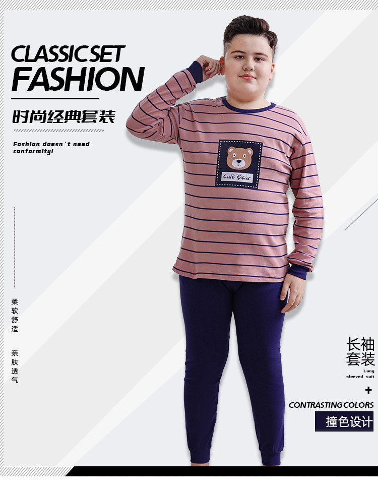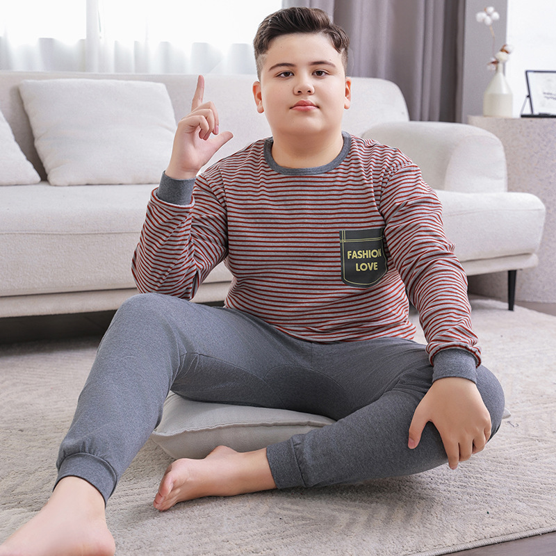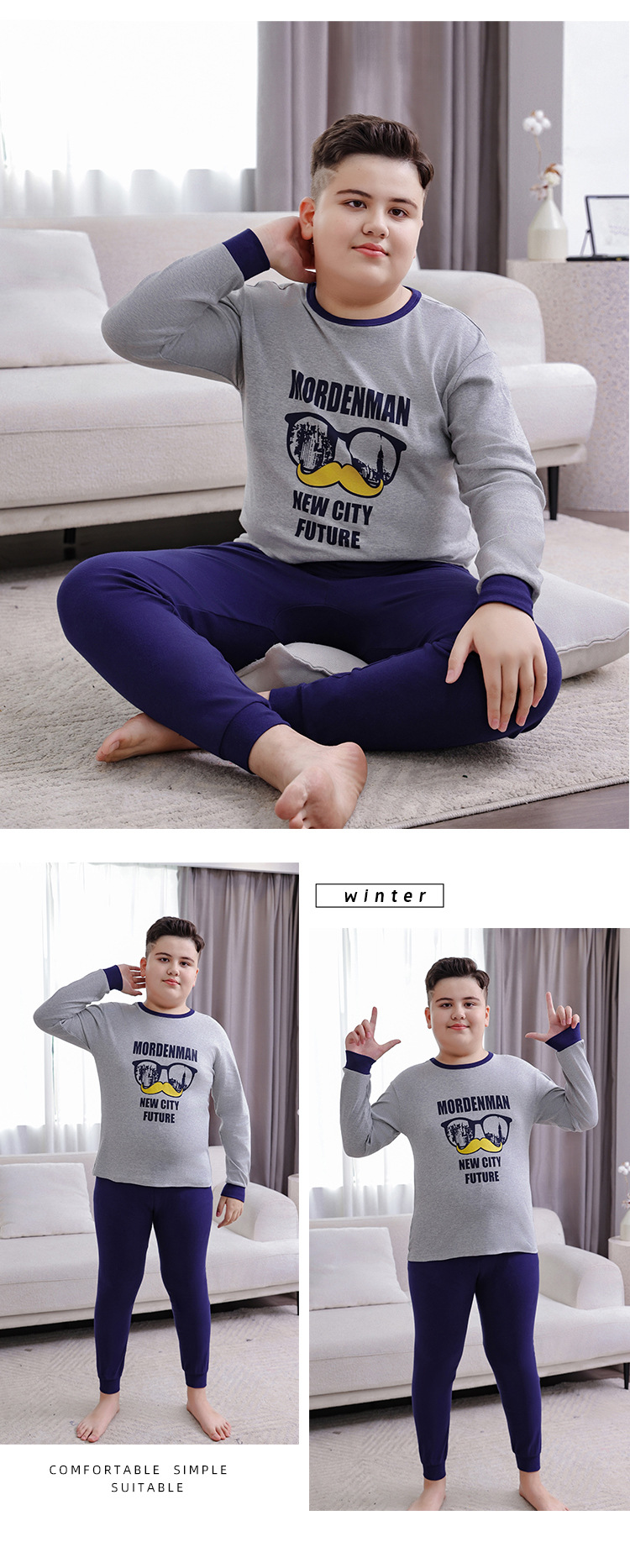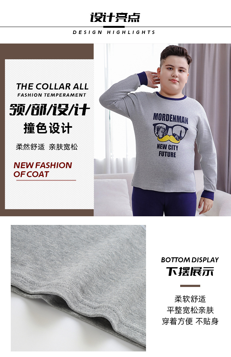 새로운 뚱뚱한 소년 속옷 세트 순면 어린이 가을 옷 긴 바지 홈 뚱뚱한 소년 잠옷 플러스 뚱뚱한 플러스 사이즈스토어 가기