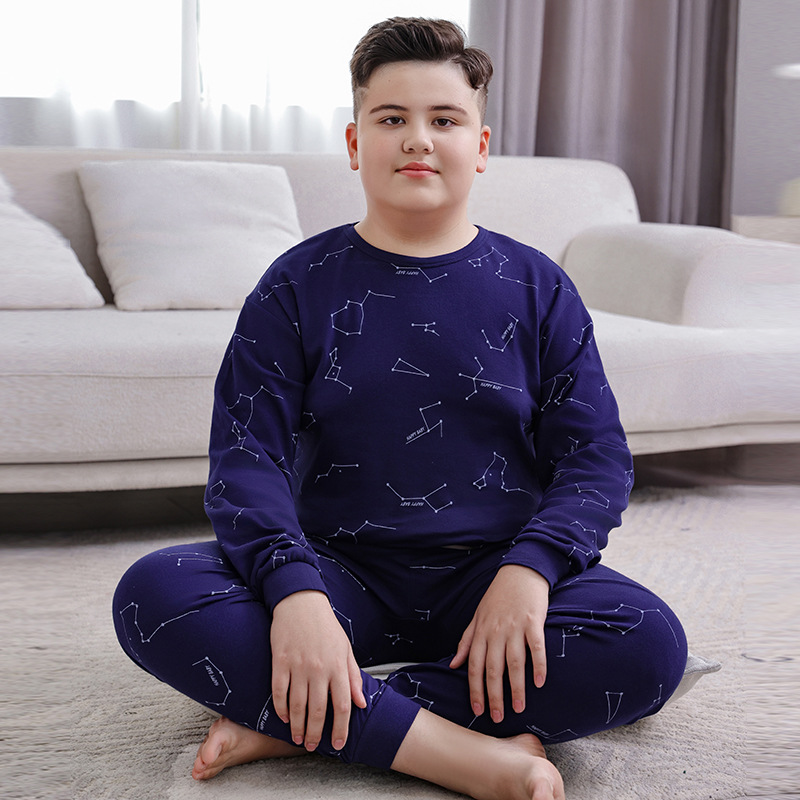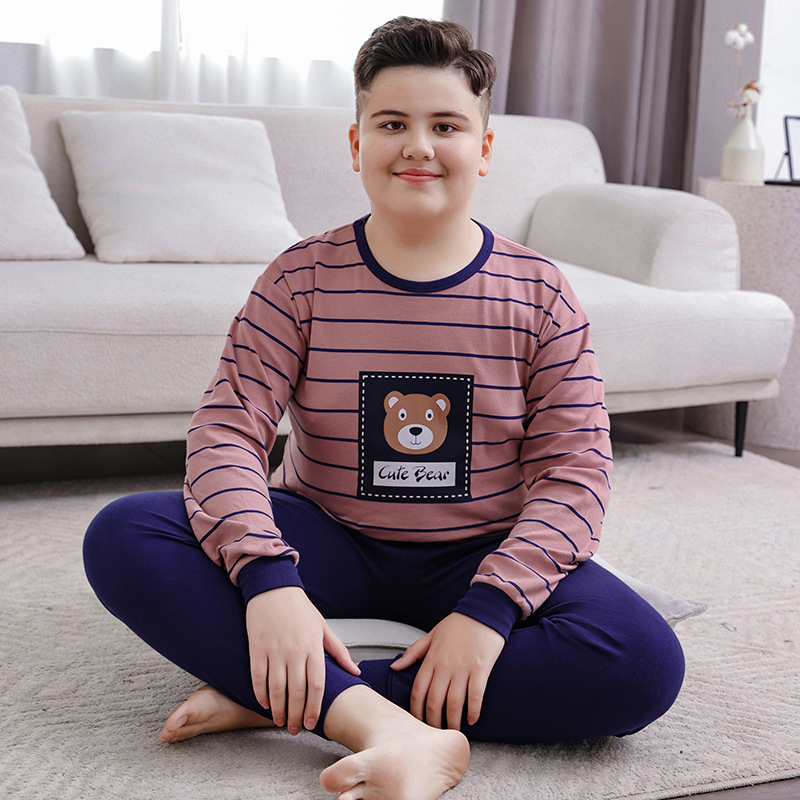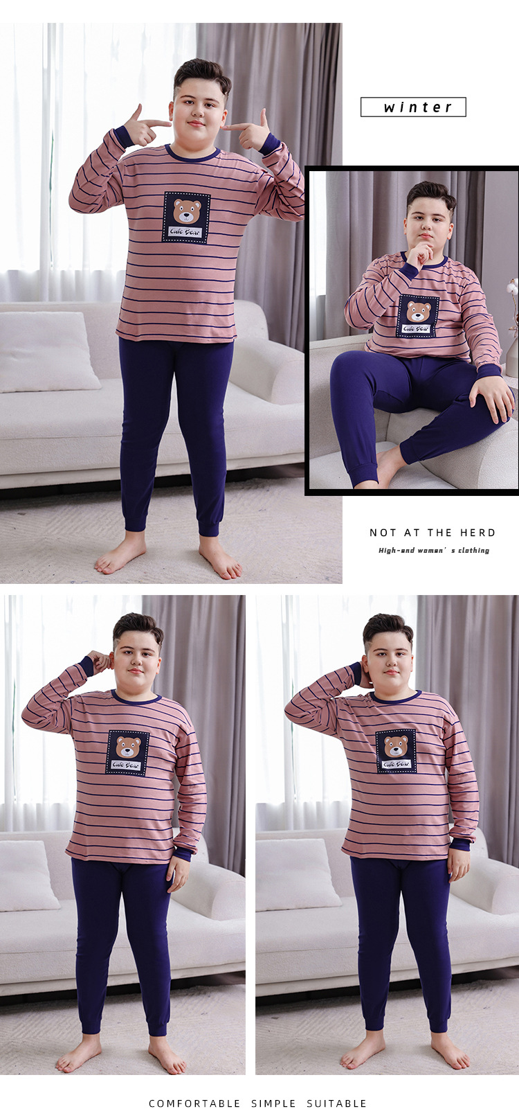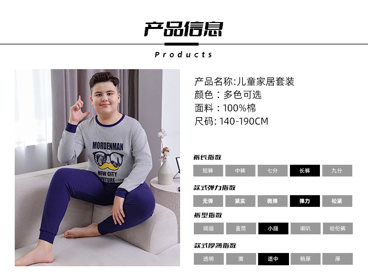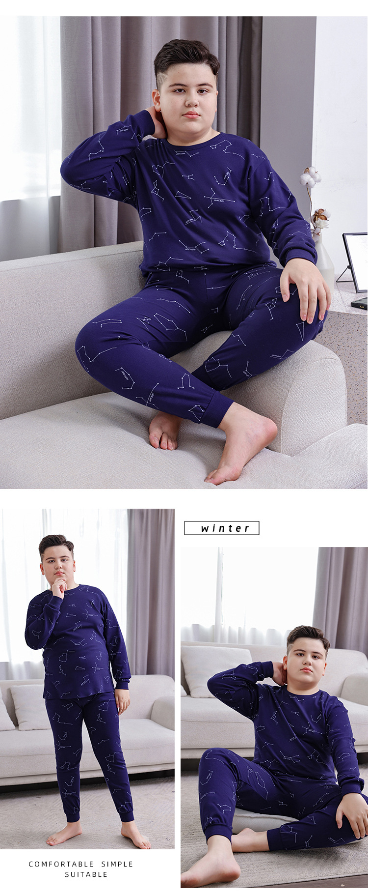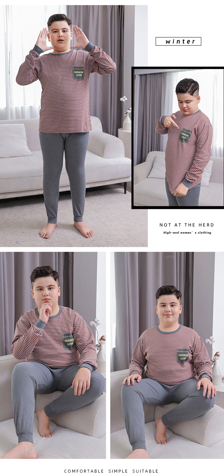 새로운 뚱뚱한 소년 속옷 세트 순면 어린이 가을 옷 긴 바지 홈 뚱뚱한 소년 잠옷 플러스 뚱뚱한 플러스 사이즈스토어 가기