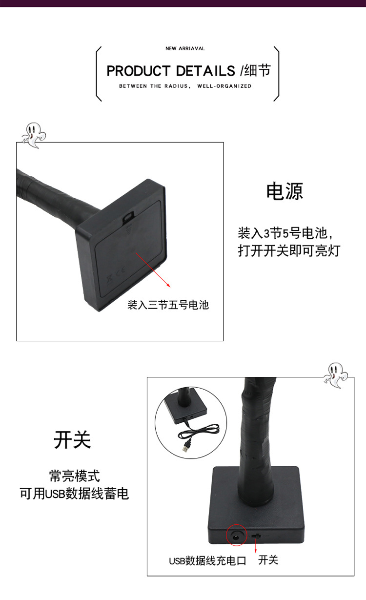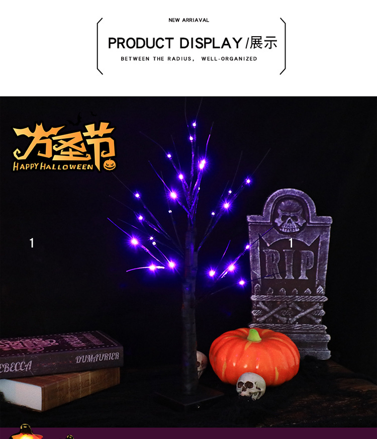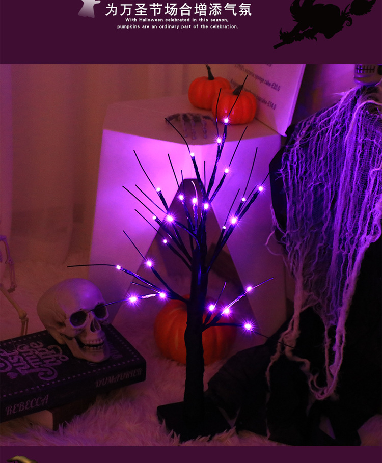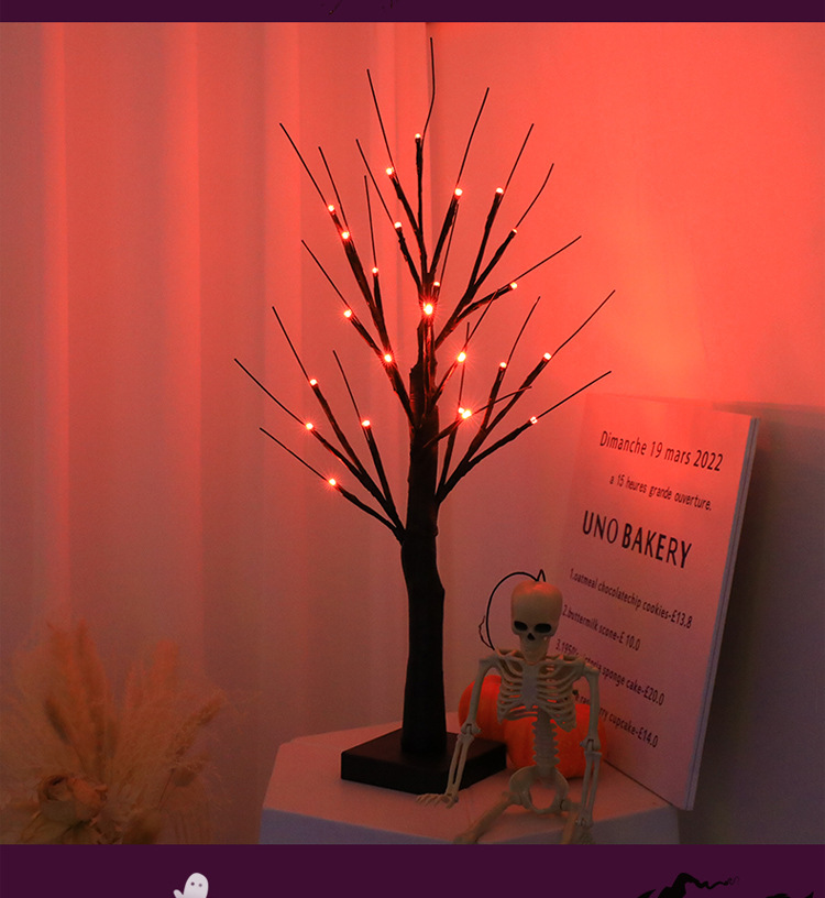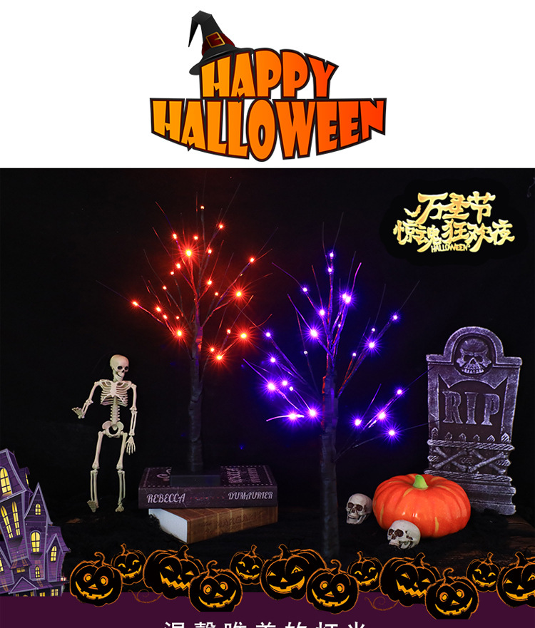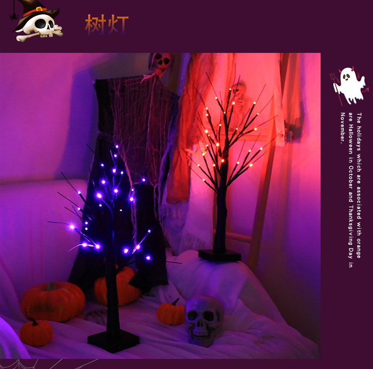 跨境热销LED装饰灯万圣节派对场景节日灯幽灵树鬼节氛围发光树灯