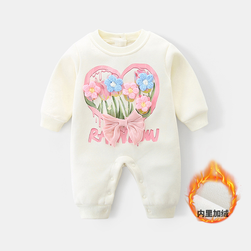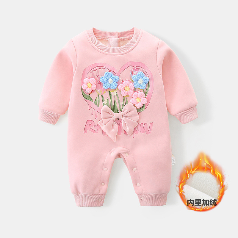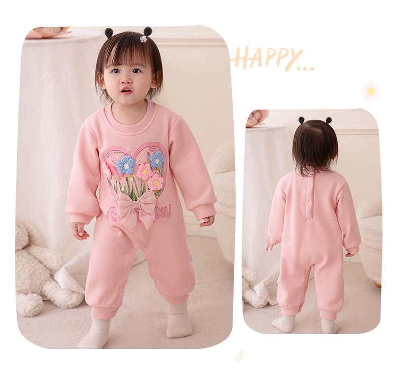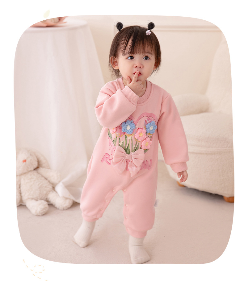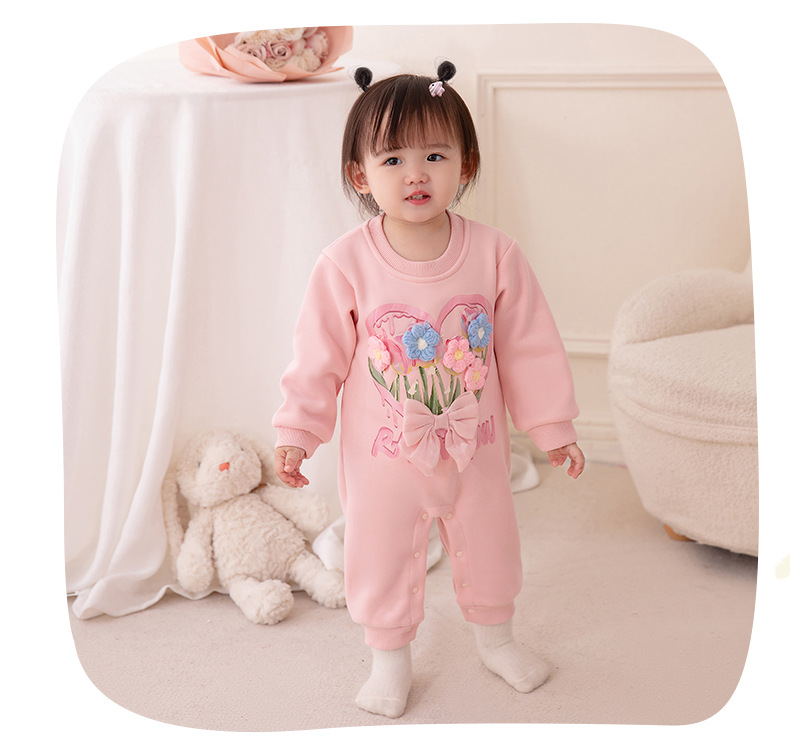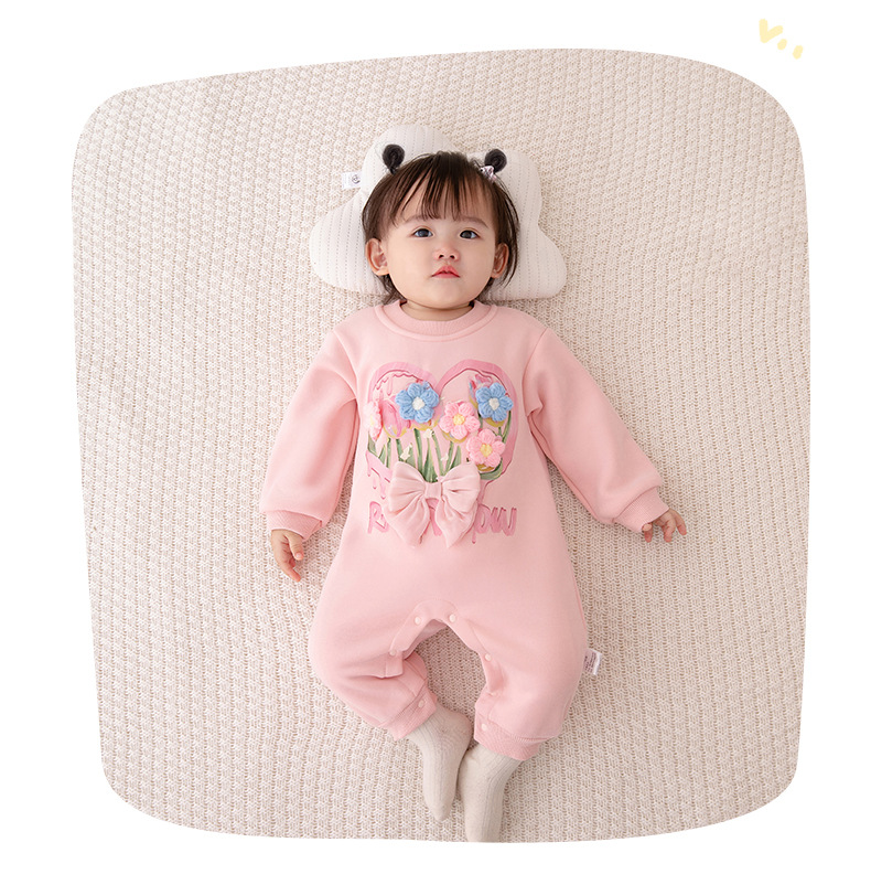 아기 가을 겨울 플리스 원피스 2025 여아 신생아 긴팔 두꺼운 보온 롬퍼 3271