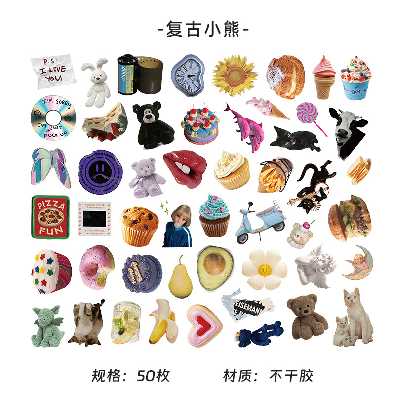 레트로 스티커 가방 장식 작은 패턴 만화 DIY 손 계정 스티커 휴대 전화 쉘 자체 접착 소재 손 계정 스티커
