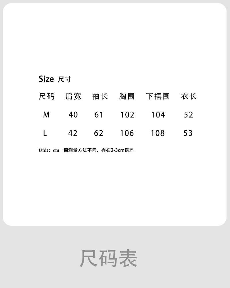 尺码 肩宽 袖长 胸围 下摆围 衣长