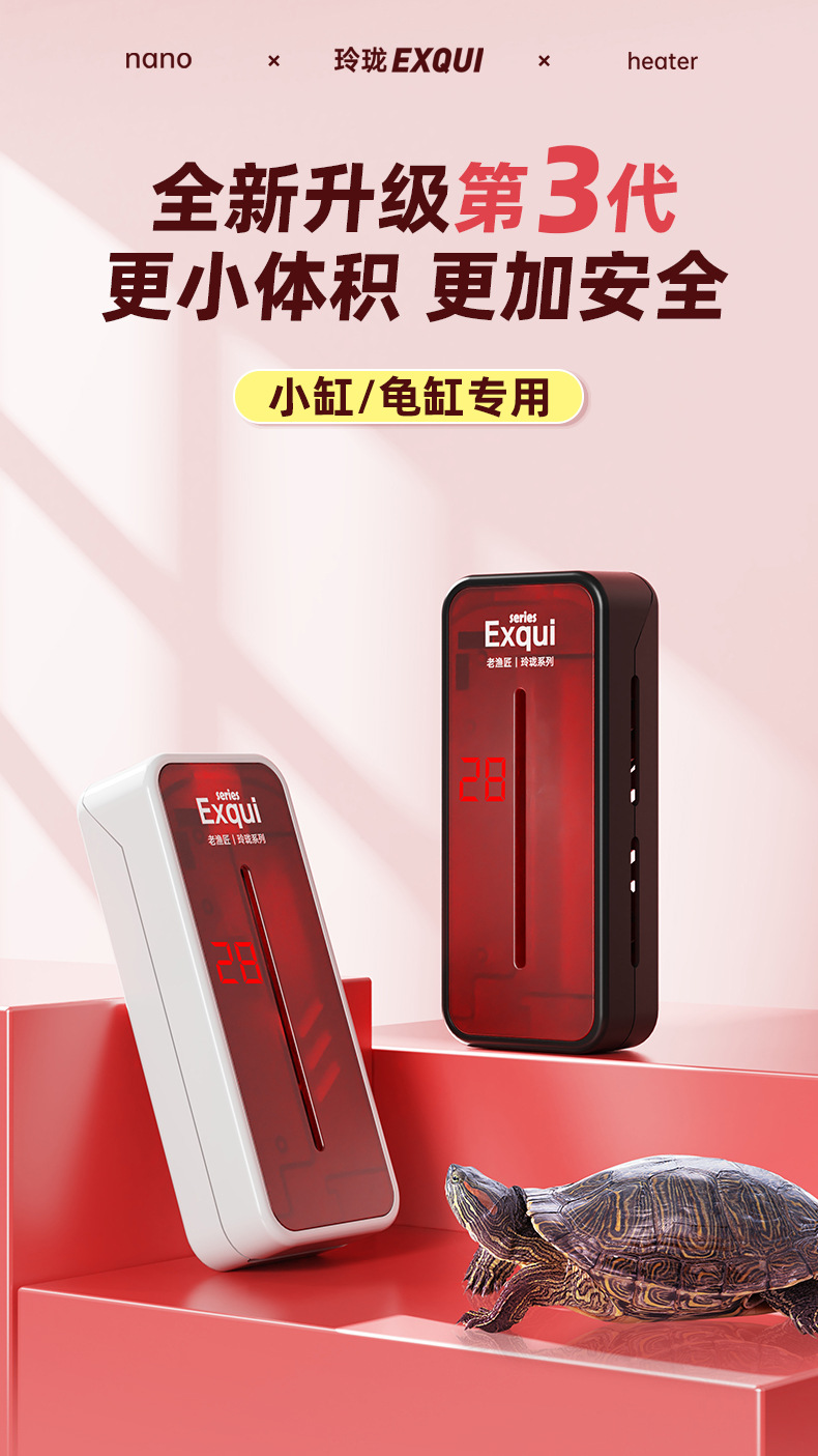 오래 된 어부 어항 가열 막대 거북이 자동 일정한 온도 가열 막대 미니 낮은 수위 온도 제어 히터 늙은 어부스토어 가기