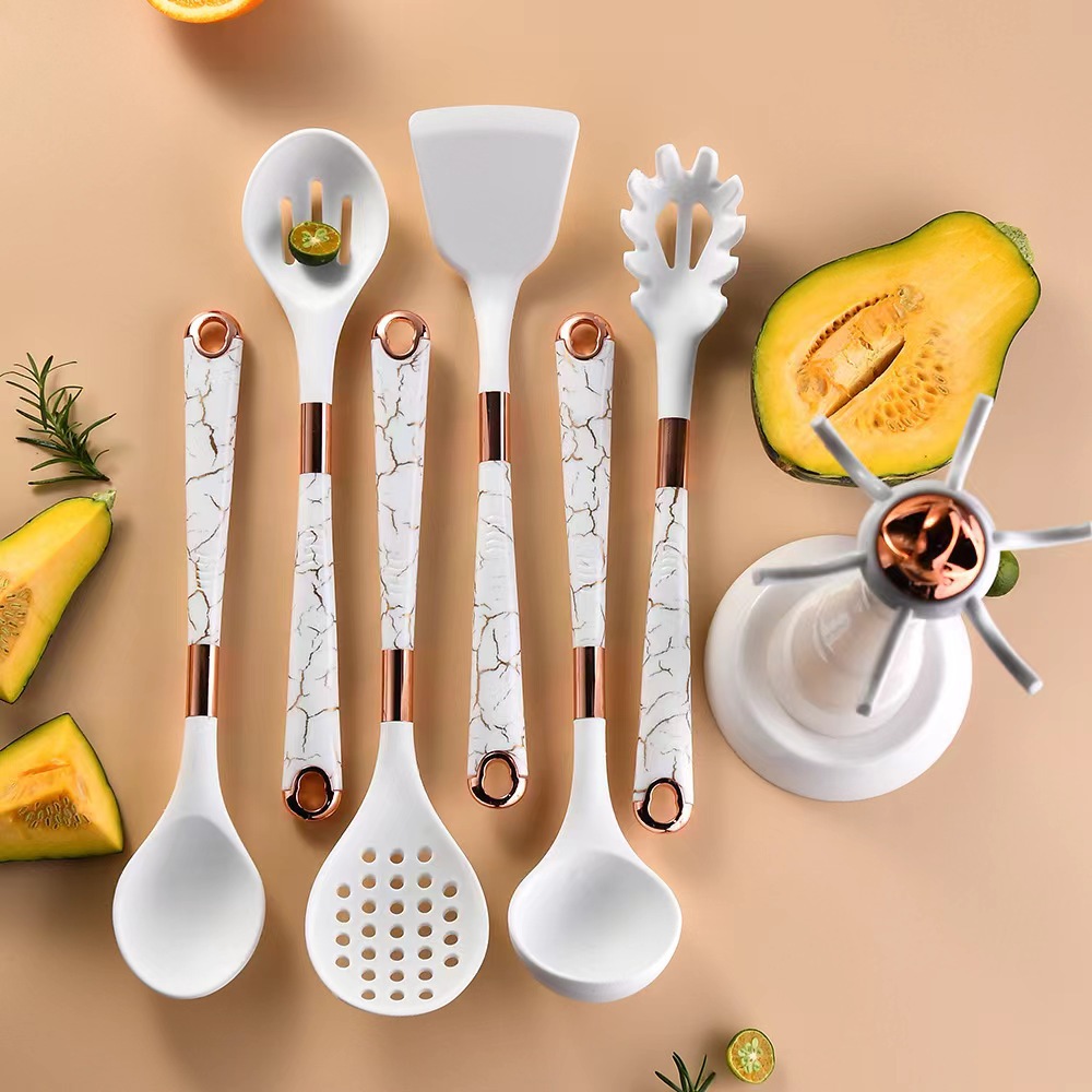 실리콘 주방 용품 7 조각 스틱 요리 삽 스푼 세트 주방 보관 랙스토어 가기