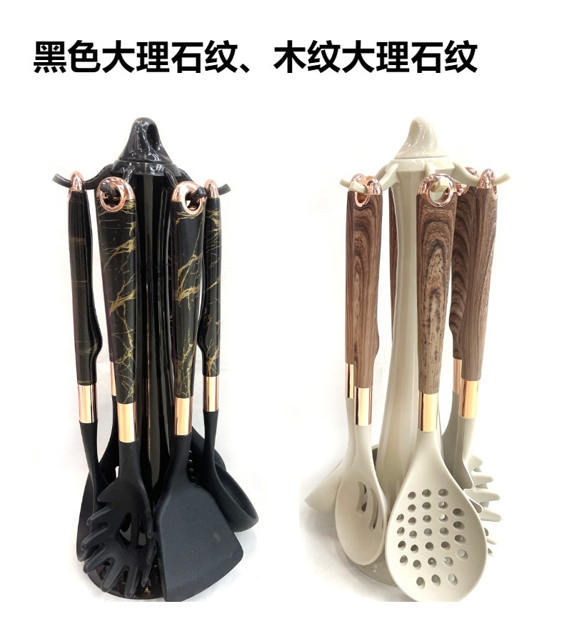 실리콘 주방 용품 7 조각 스틱 요리 삽 스푼 세트 주방 보관 랙