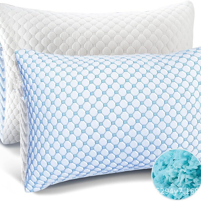 아마존 아이스 실크 대나무 섬유 니트 패브릭 깨진 메모리 폼 베개 느린 리바운드 깨진 메모리 폼 자궁 경부 베개