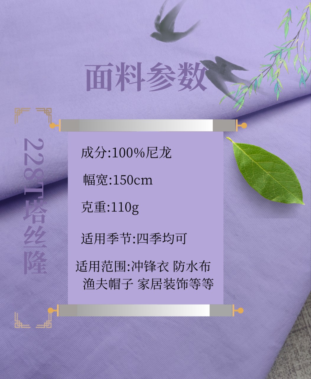 228T Taslon 슬럽 주름 원단 방수 야외 코트 재킷 다운 재킷 재킷 원단