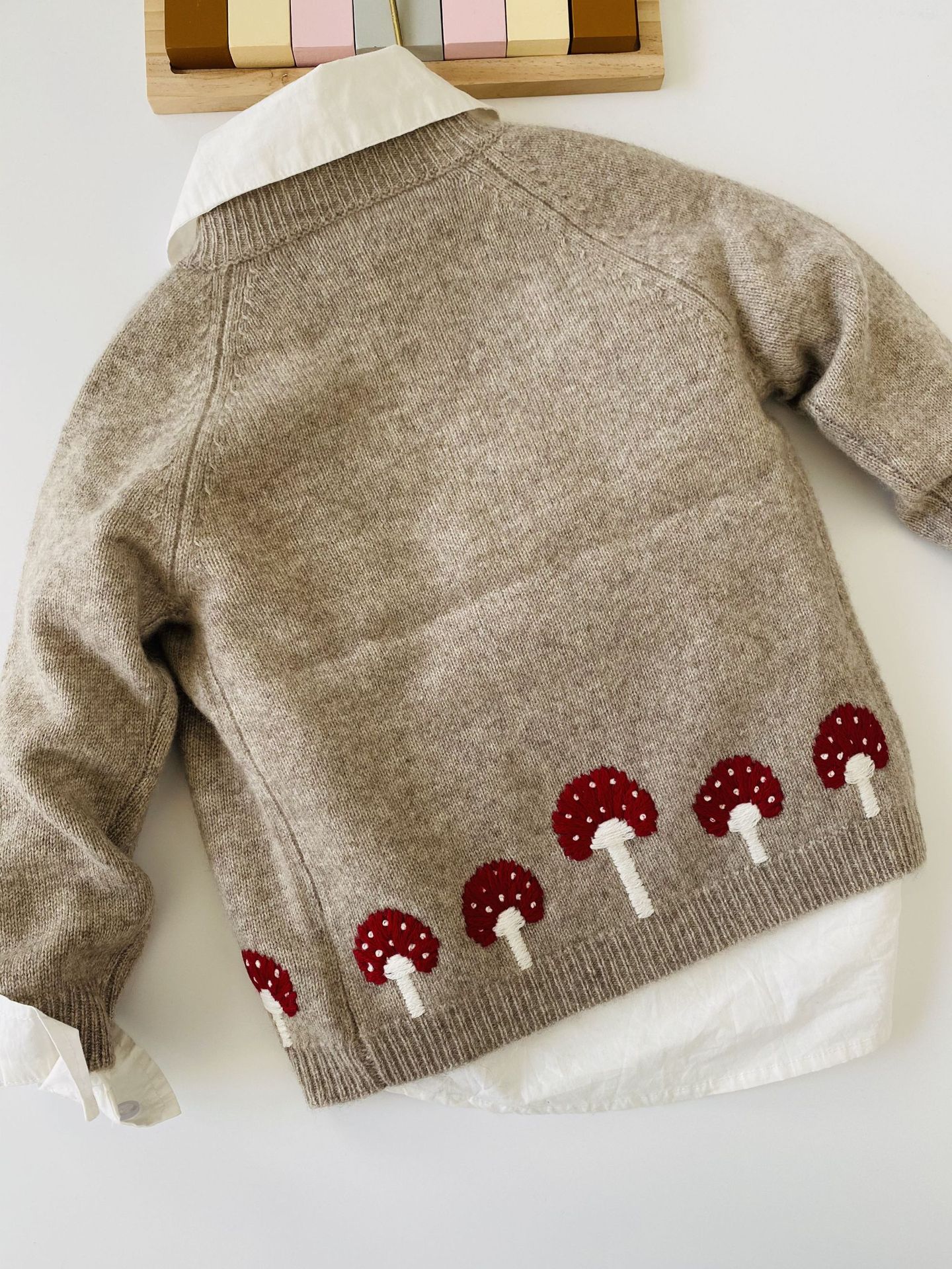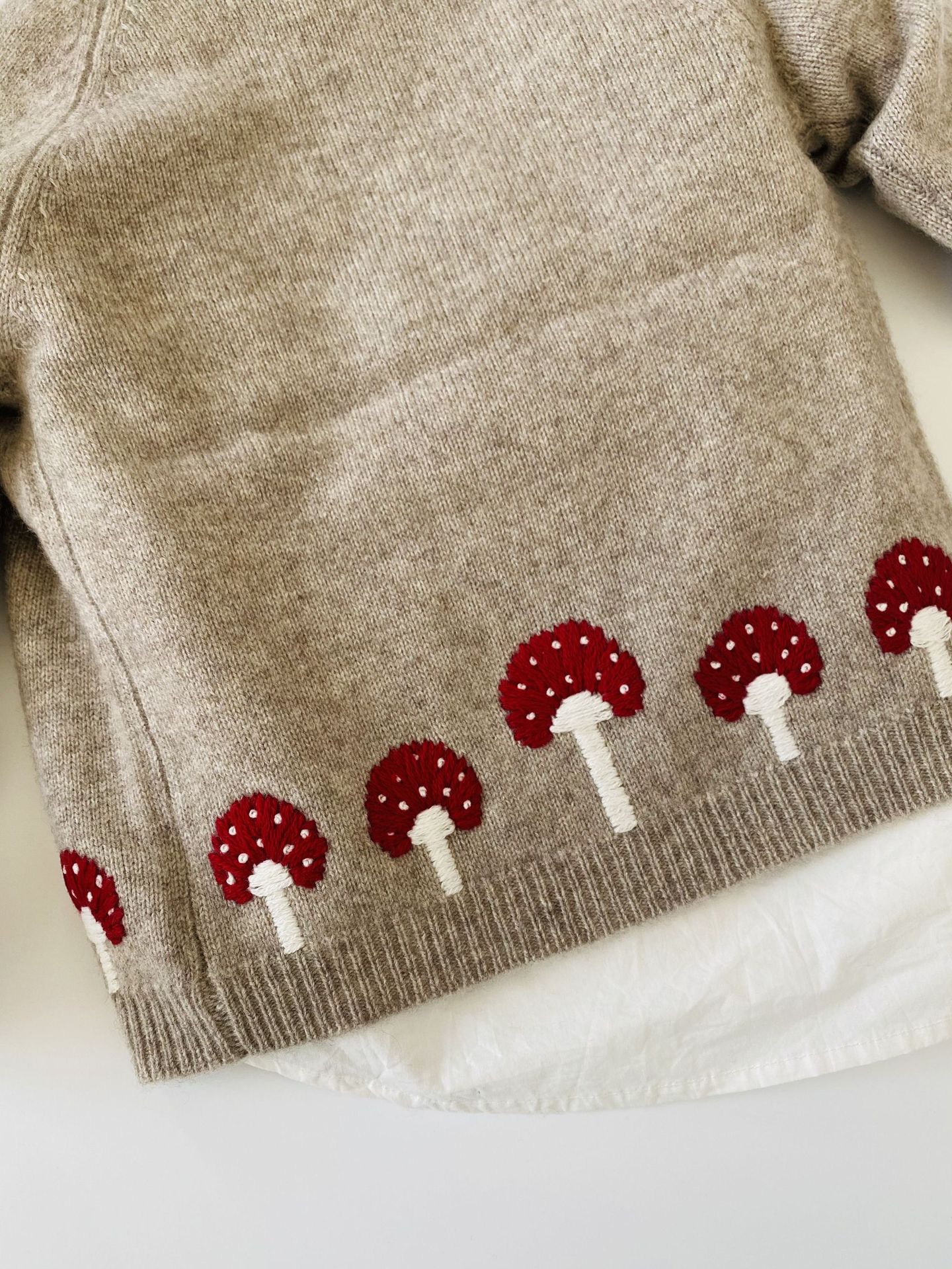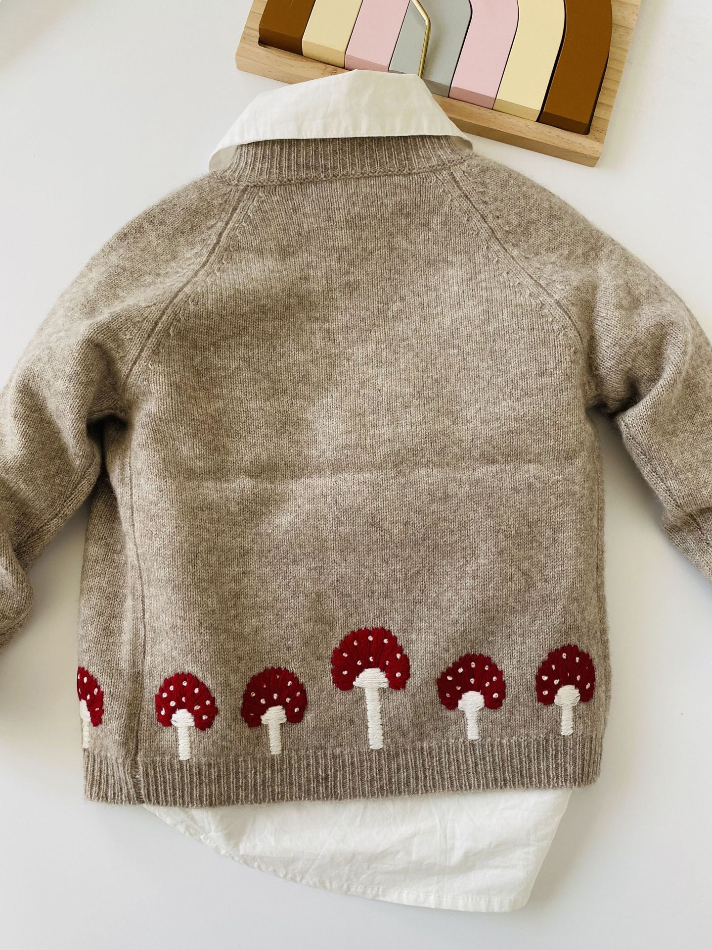 내몽골 Pengbo 캐시미어 가을 새로운 어린이 캐시미어 스웨터 라운드 넥 두꺼운 카디건 긴 소매 자수 버섯