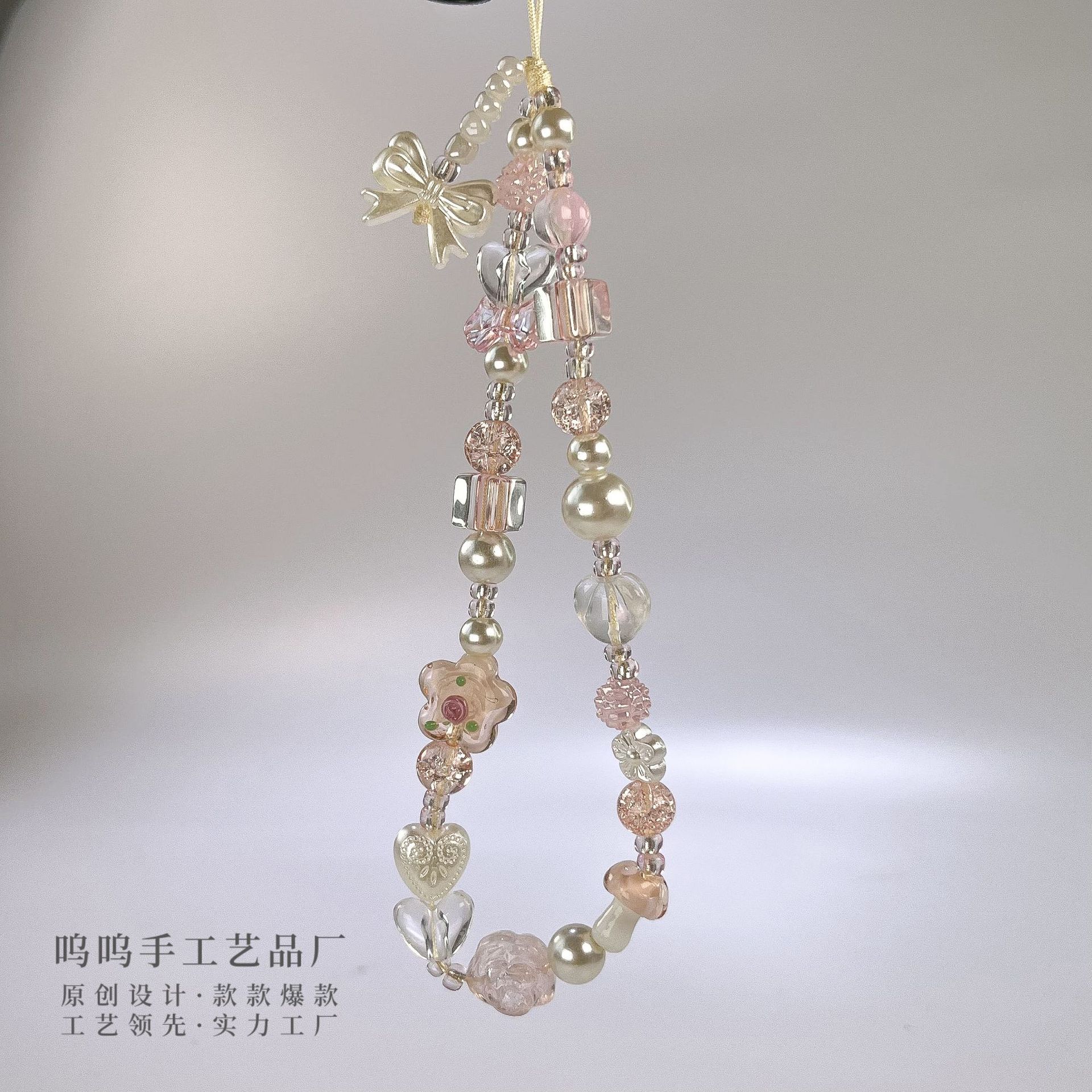 와우 원래 유리 작은 꽃 구슬 휴대 전화 체인 DIY 수제 구슬 휴대 전화 체인 휴대 전화 쉘 펜던트 ccd 카메라스토어 가기
