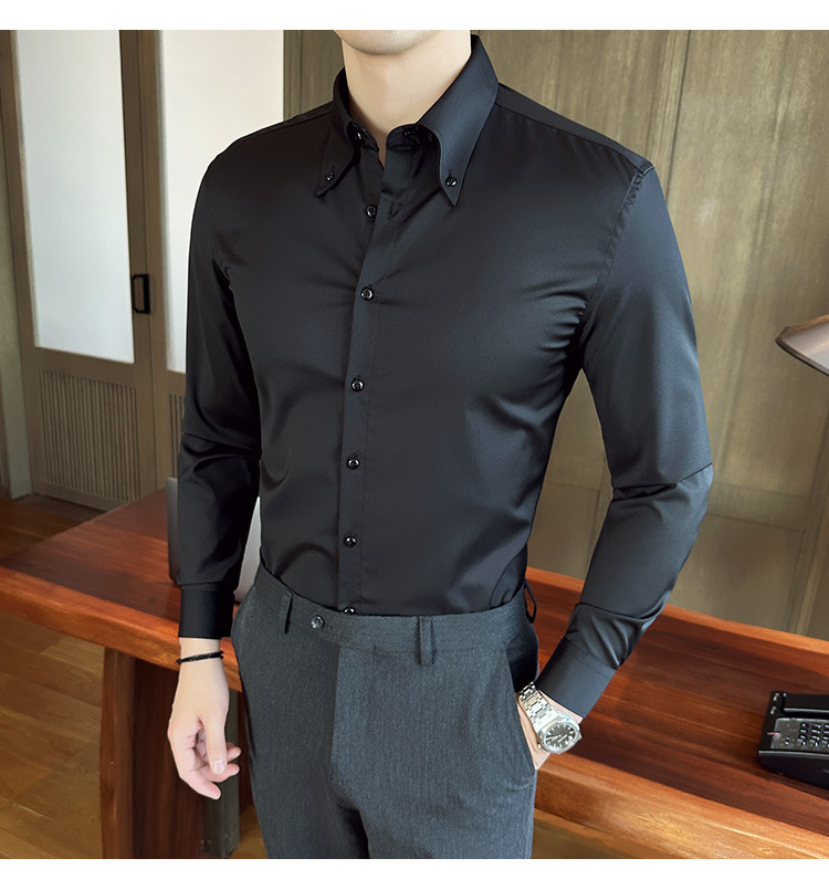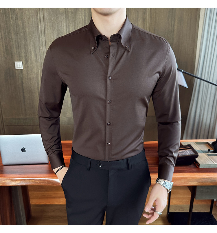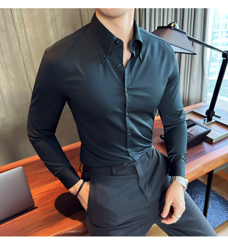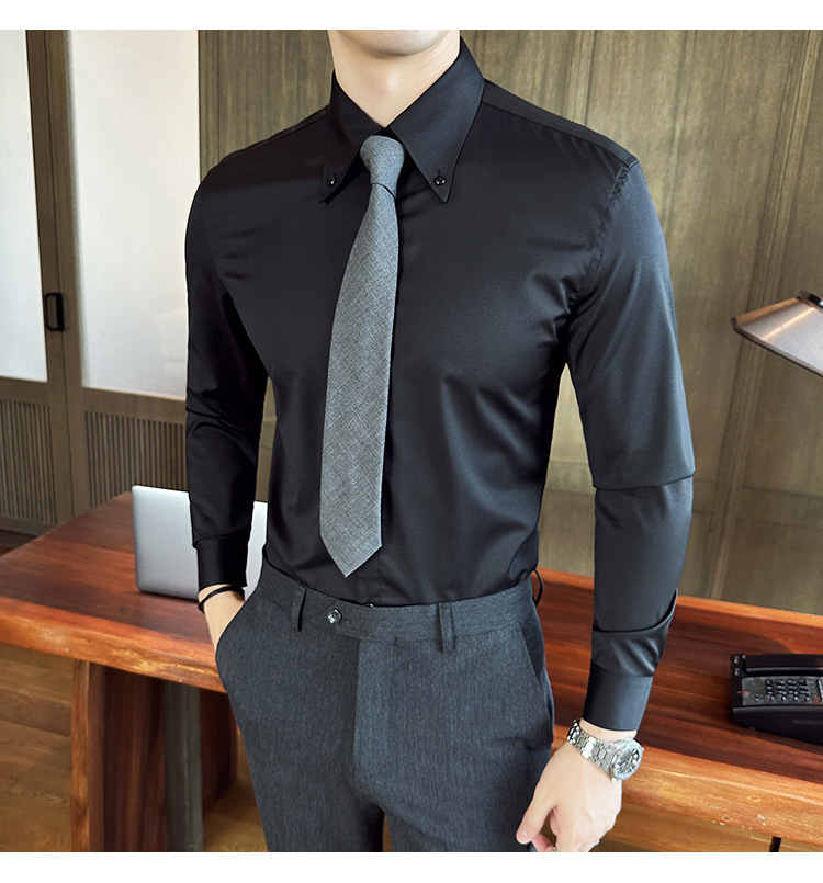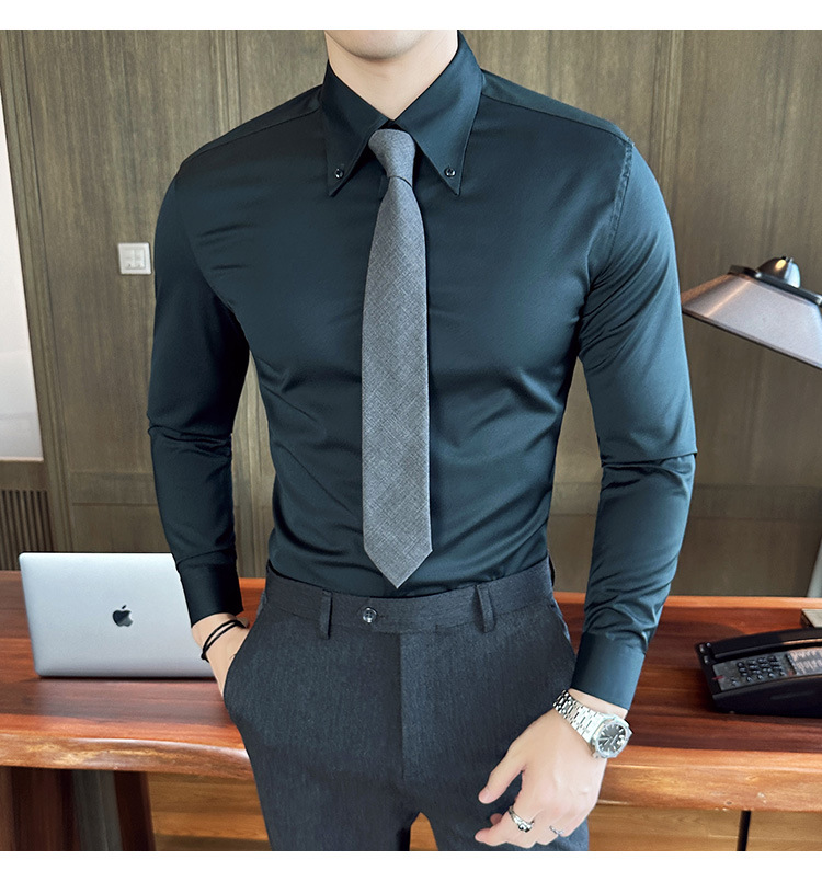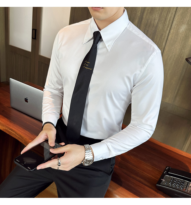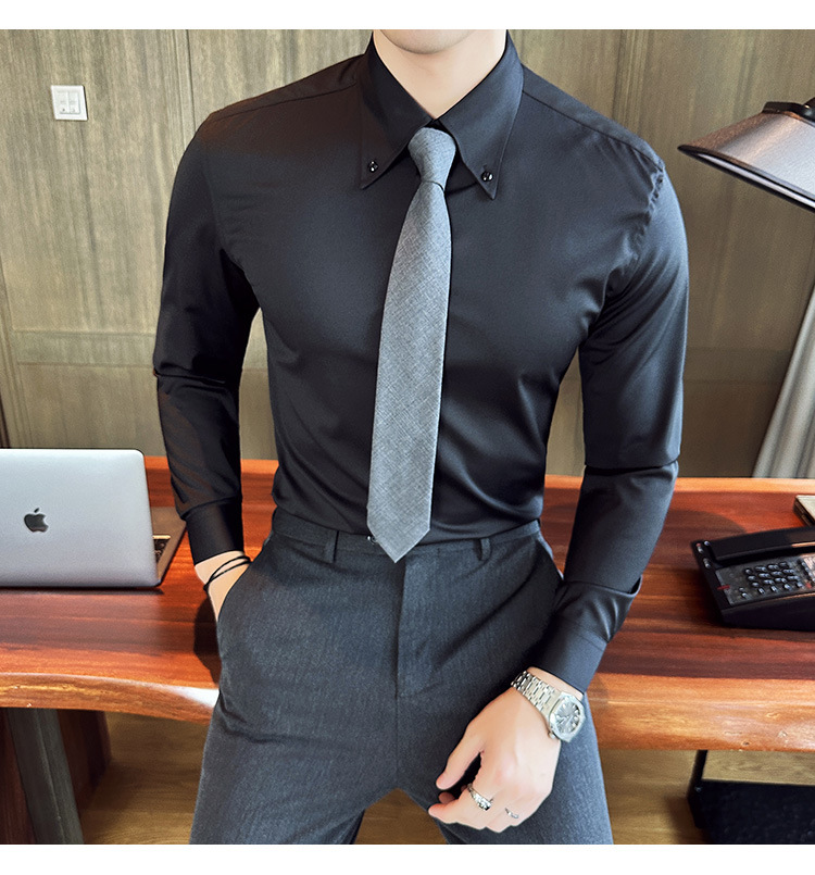 2023 가을 청소년 칼라 슬림 셔츠 남자의 긴 소매 비즈니스 캐주얼 셔츠 CS3034
