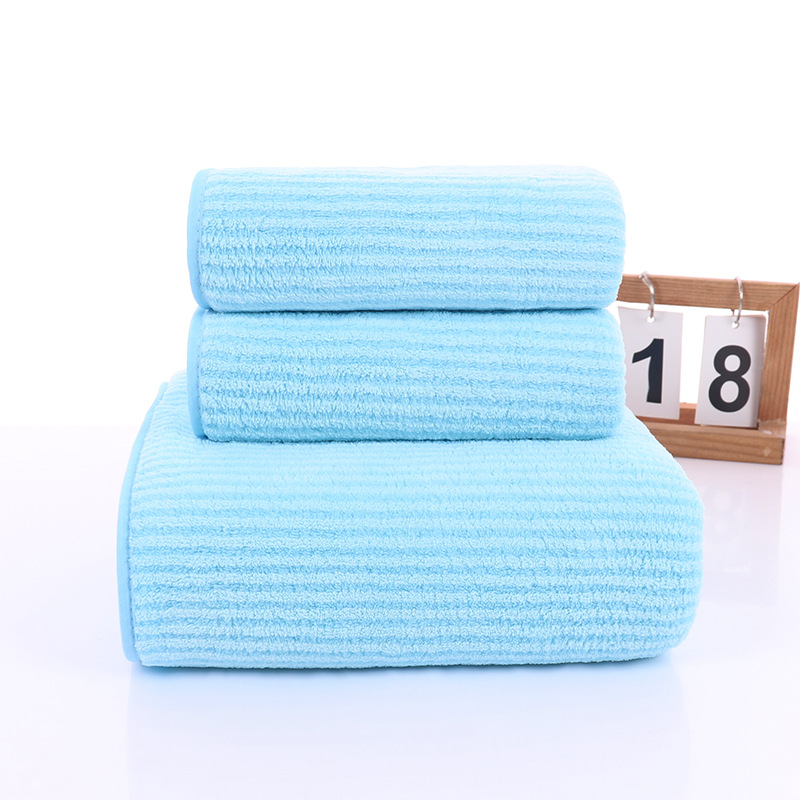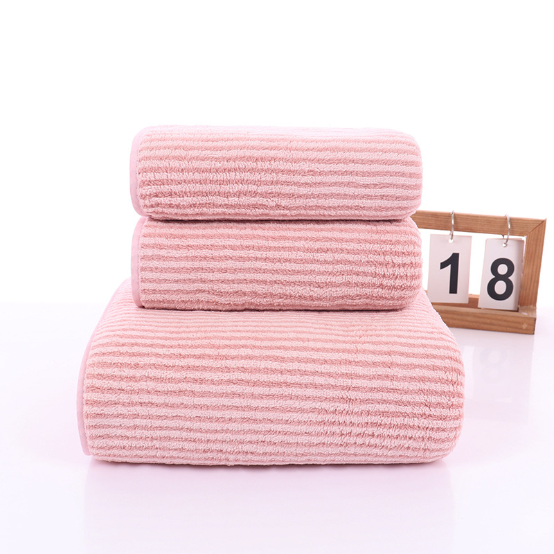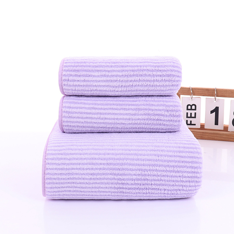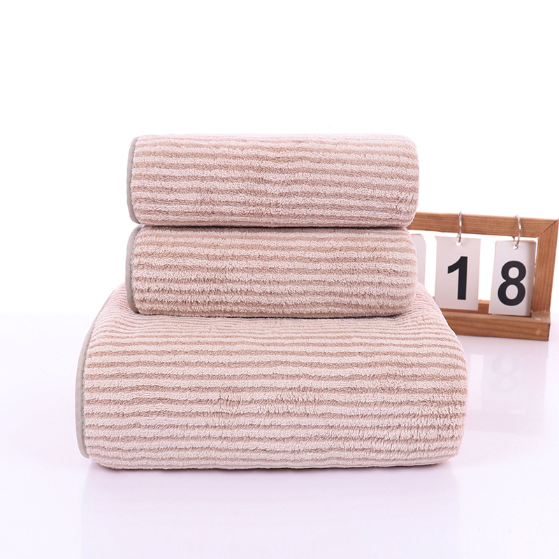 AB 산호 벨벳 수건 목욕 수건 세트 도매 가장자리 줄무늬 부드러운 목욕 수건 대형 수건 세트