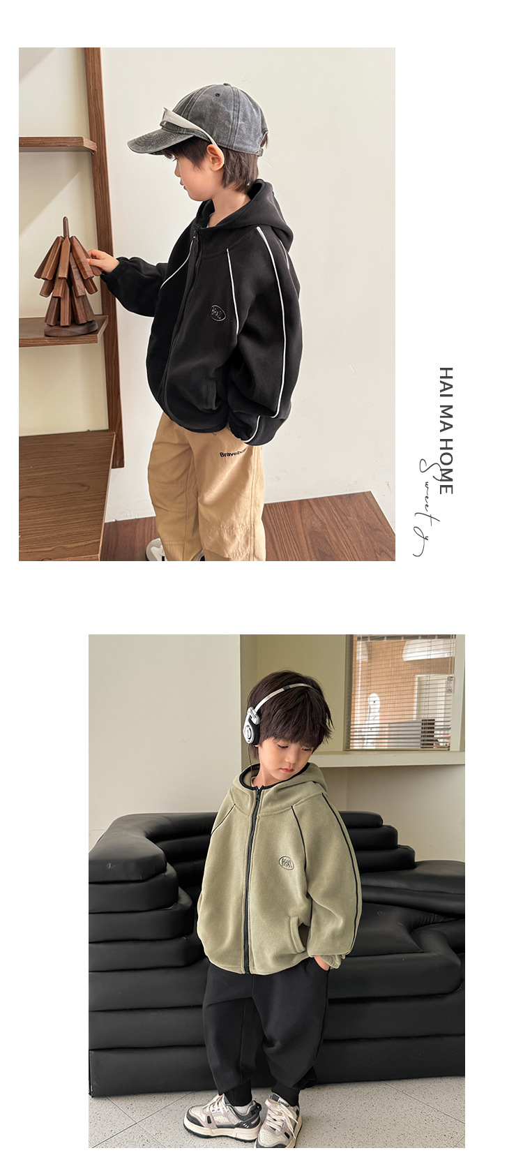 해마가족 아동복 2025 겨울 신상 남아용 기모 두꺼운 후드 재킷 트렌디한 겨울옷 가디건 상의스토어 가기