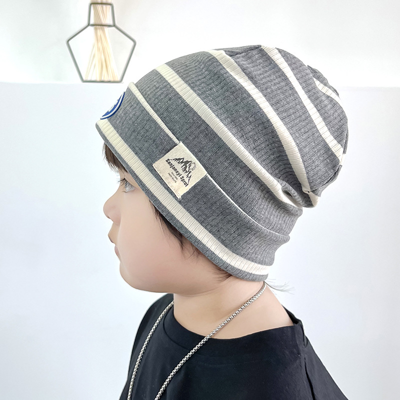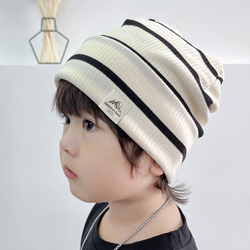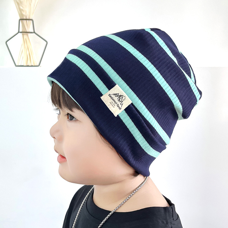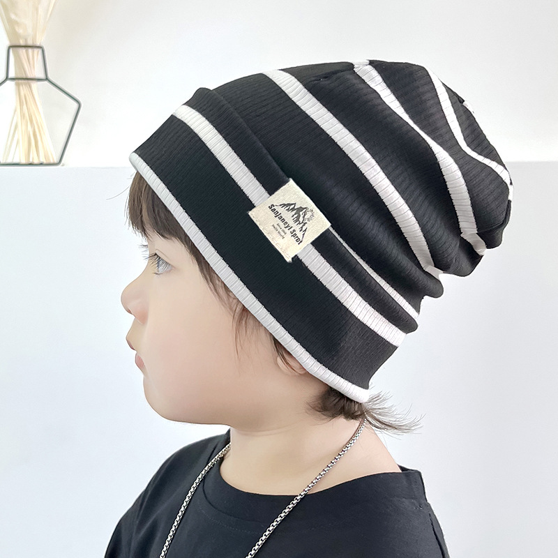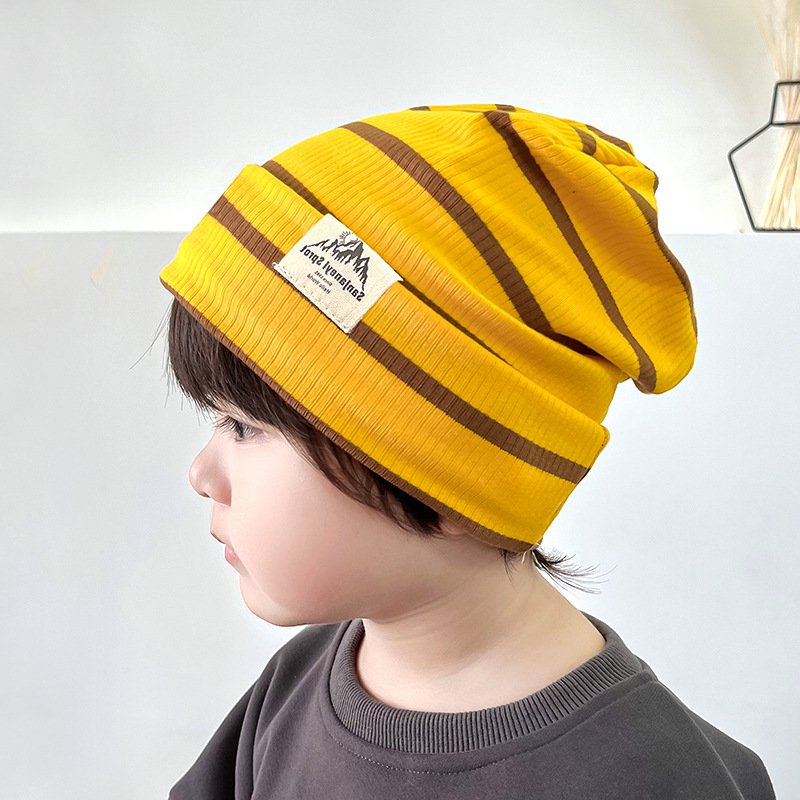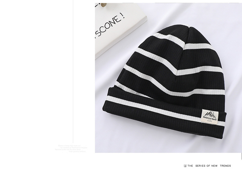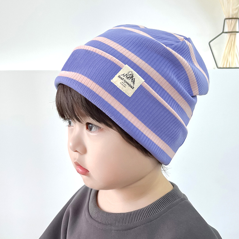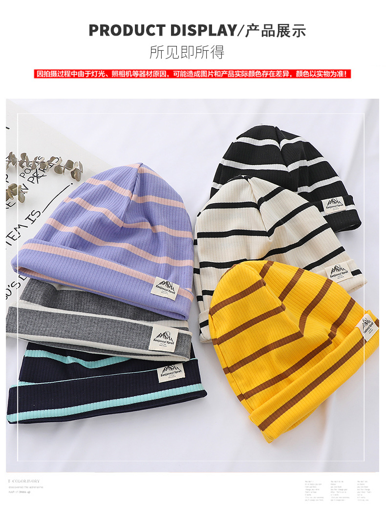 23 가을과 겨울 새로운 줄무늬 어린이 니트 모자 소년과 소녀 패션 따뜻한 더블 레이어 캡 턴업 귀 보호 캡