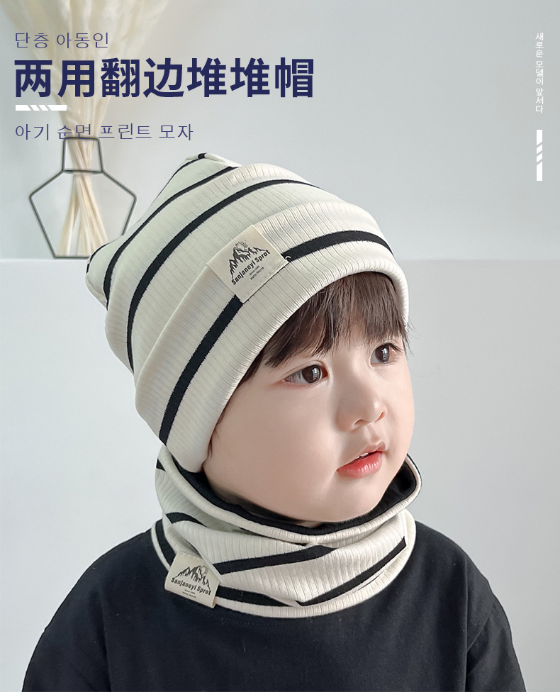 23 가을과 겨울 새로운 줄무늬 어린이 니트 모자 소년과 소녀 패션 따뜻한 더블 레이어 캡 턴업 귀 보호 캡스토어 가기