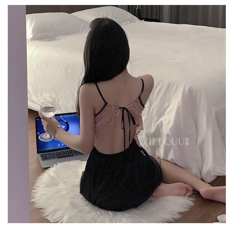 자세 순수한 섹스 섹시한 등이없는 잠옷 가슴 패드 슬링 잠옷 간단한 가운 여성의 가정 옷 세트 6202스토어 가기