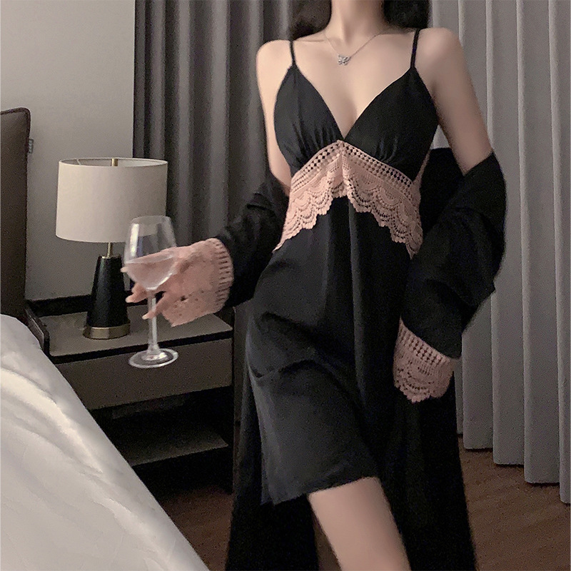 자세 순수한 섹스 섹시한 등이없는 잠옷 가슴 패드 슬링 잠옷 간단한 가운 여성의 가정 옷 세트 6202