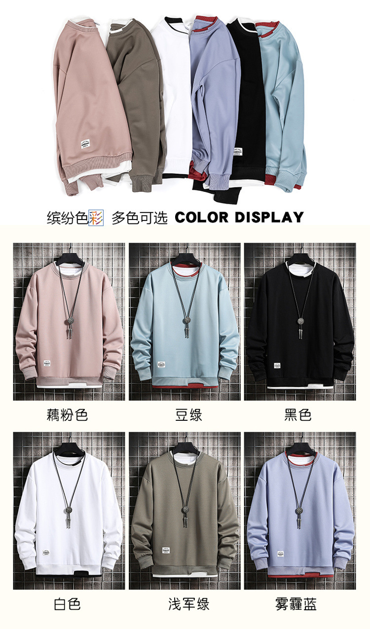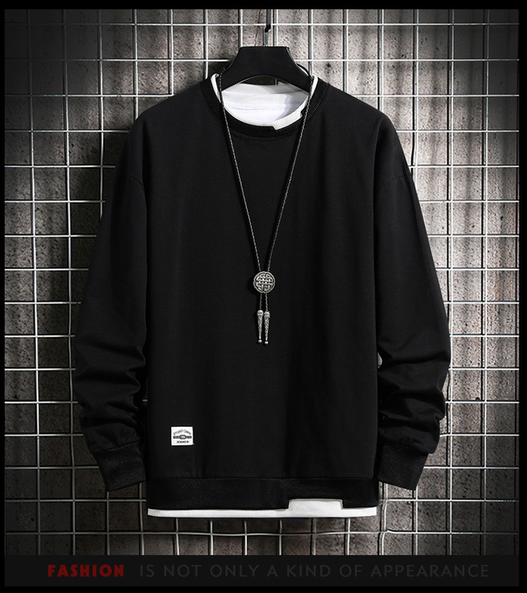 가짜 투피스 긴팔 티셔츠 봄과 가을 새로운 남성 캐주얼 라운드 넥 스웻셔츠 트렌디 브랜드 대외 무역 일본과 한국의 잘생긴 탑 트렌디스토어 가기