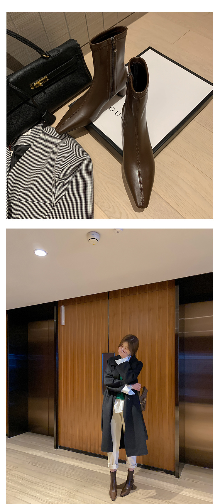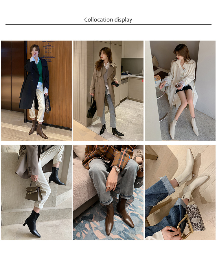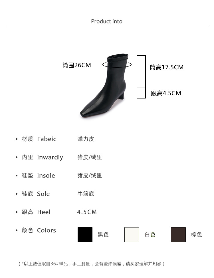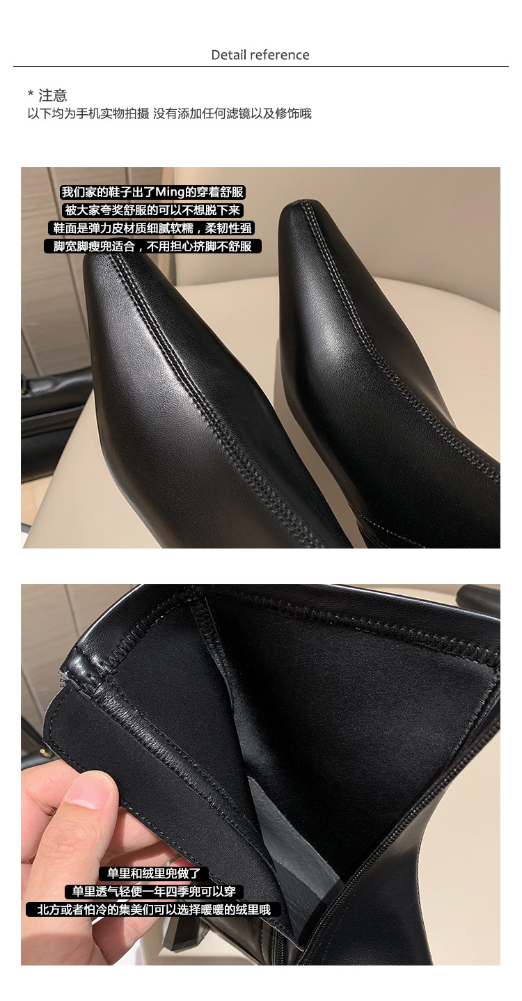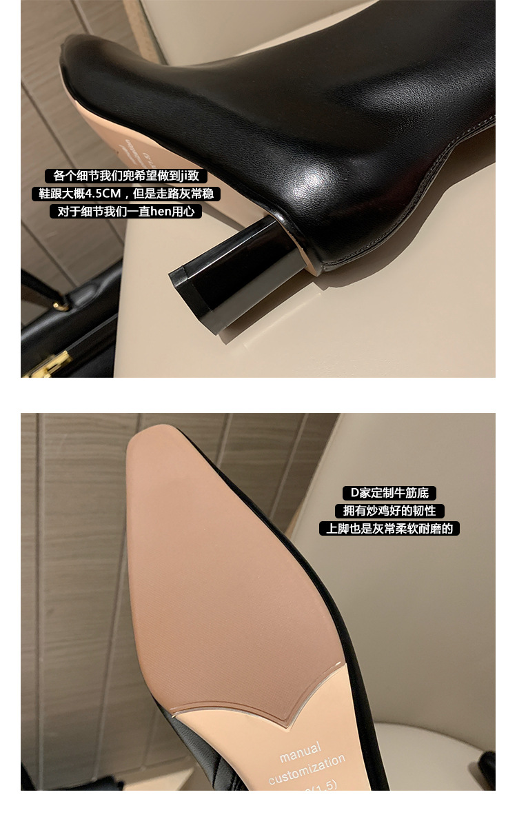 한국 스타일 우아한 마틴 2023 가을과 겨울 새로운 작은 사각 머리 두꺼운 굽 스트레치 얇은 부츠 여성용 모든 매치 하이힐 짧은 부츠스토어 가기