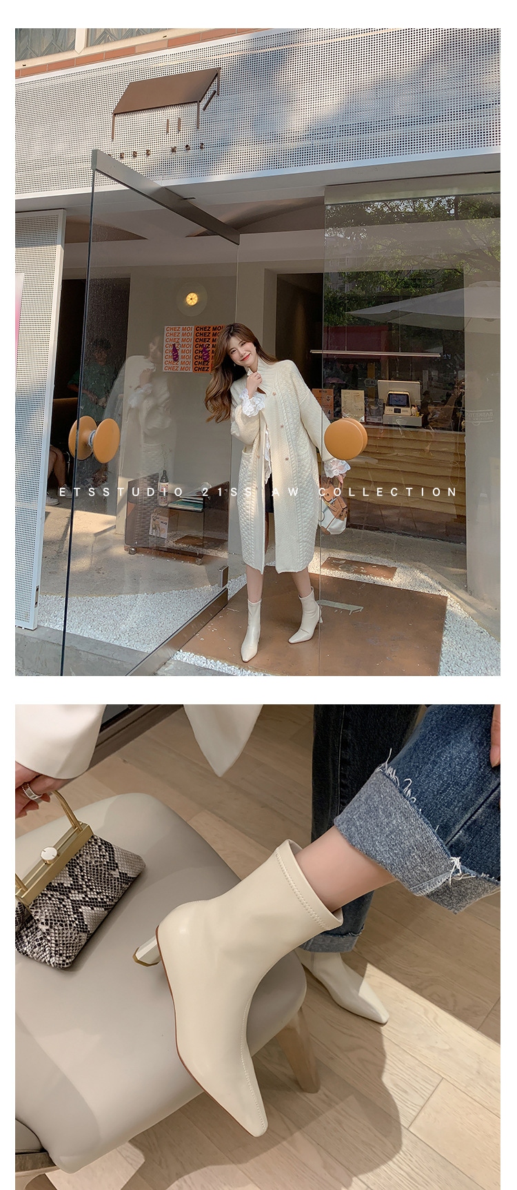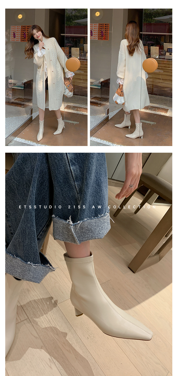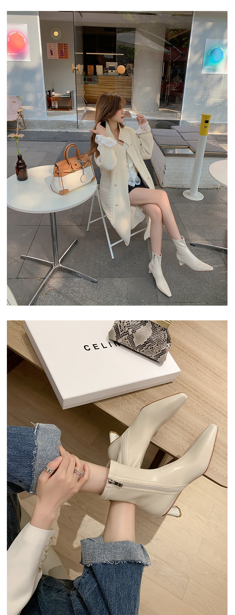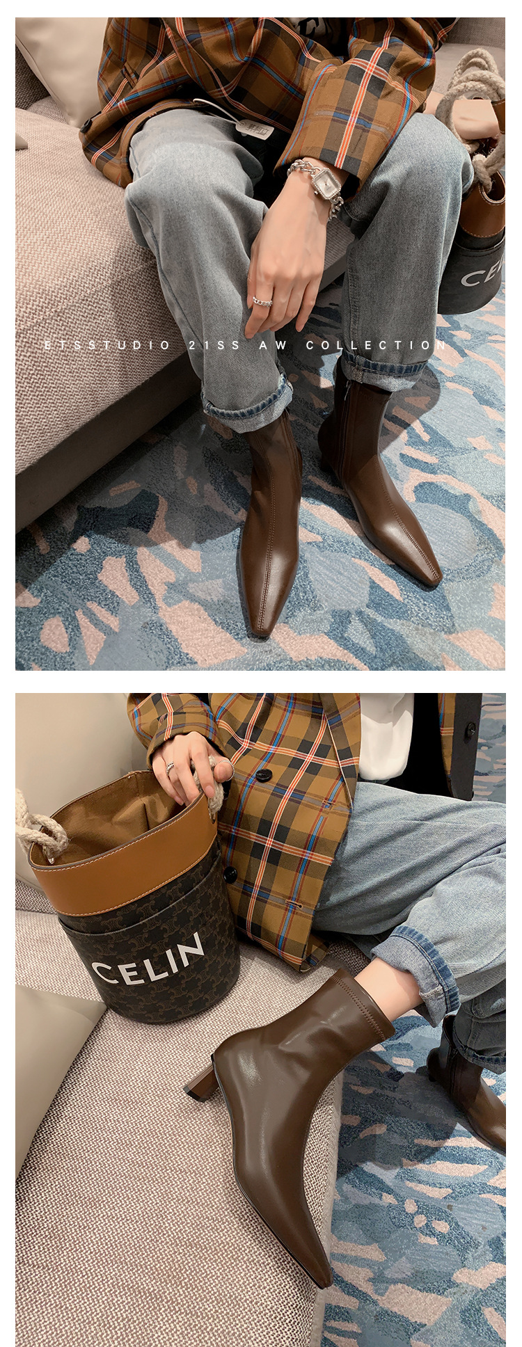 한국 스타일 우아한 마틴 2023 가을과 겨울 새로운 작은 사각 머리 두꺼운 굽 스트레치 얇은 부츠 여성용 모든 매치 하이힐 짧은 부츠스토어 가기