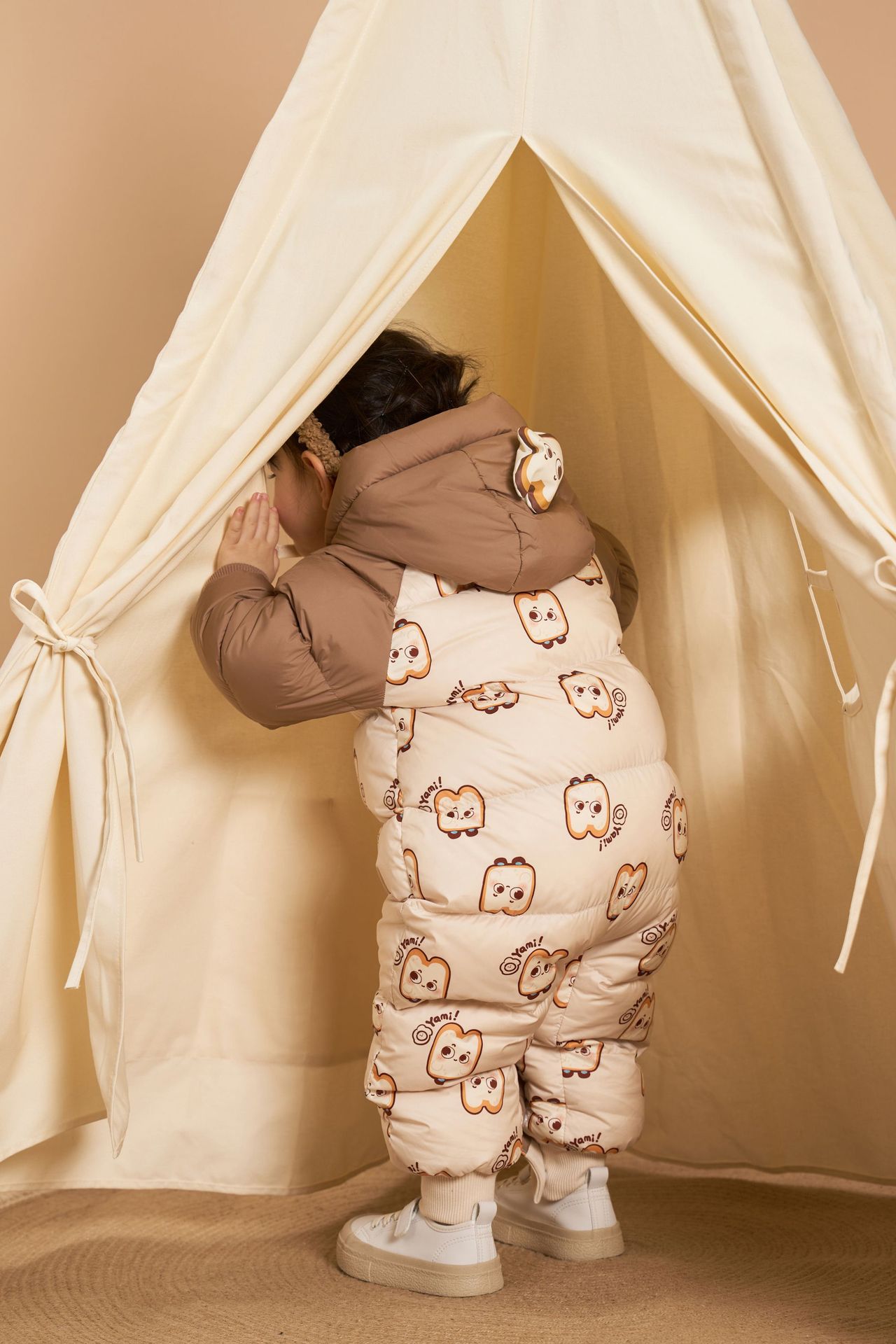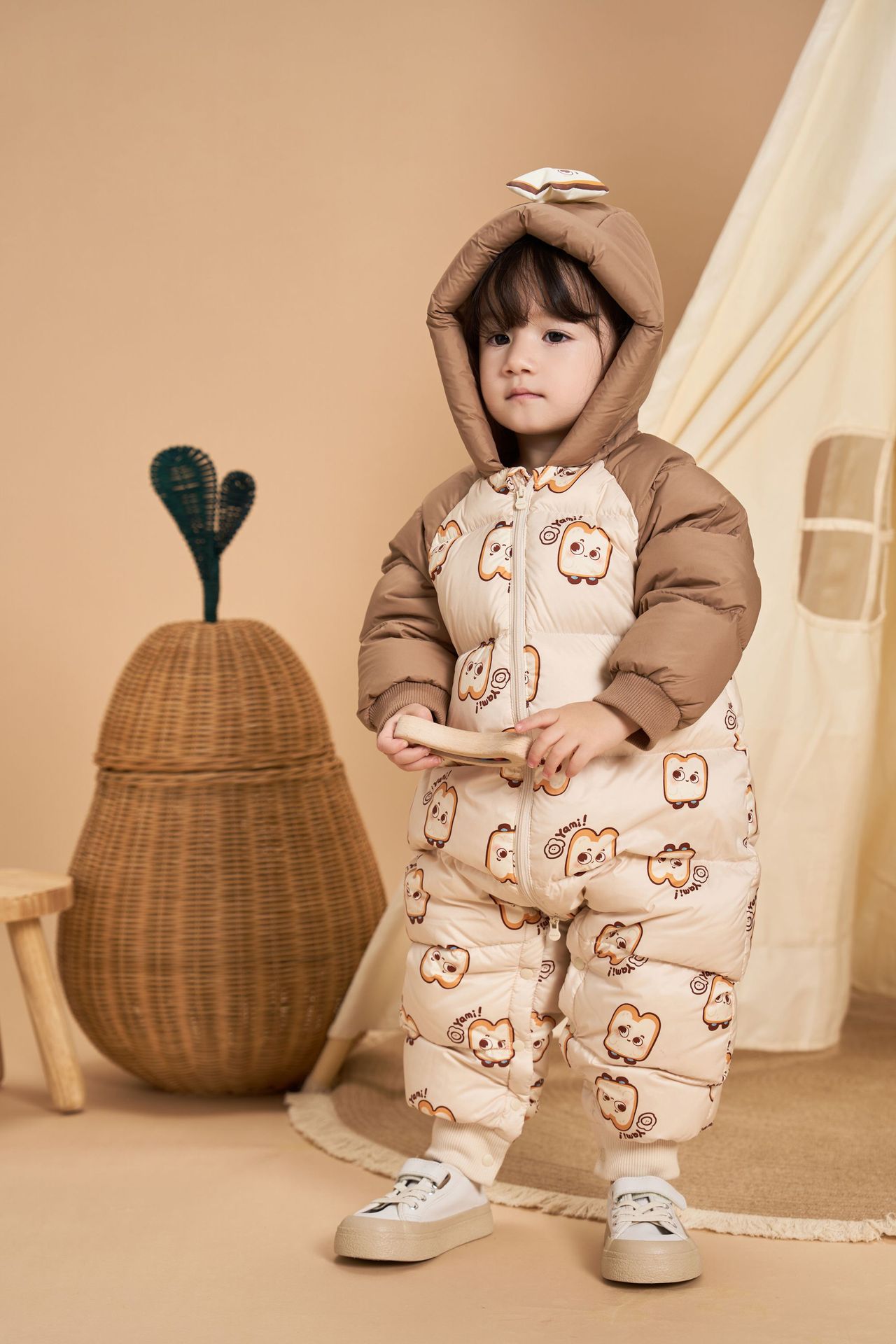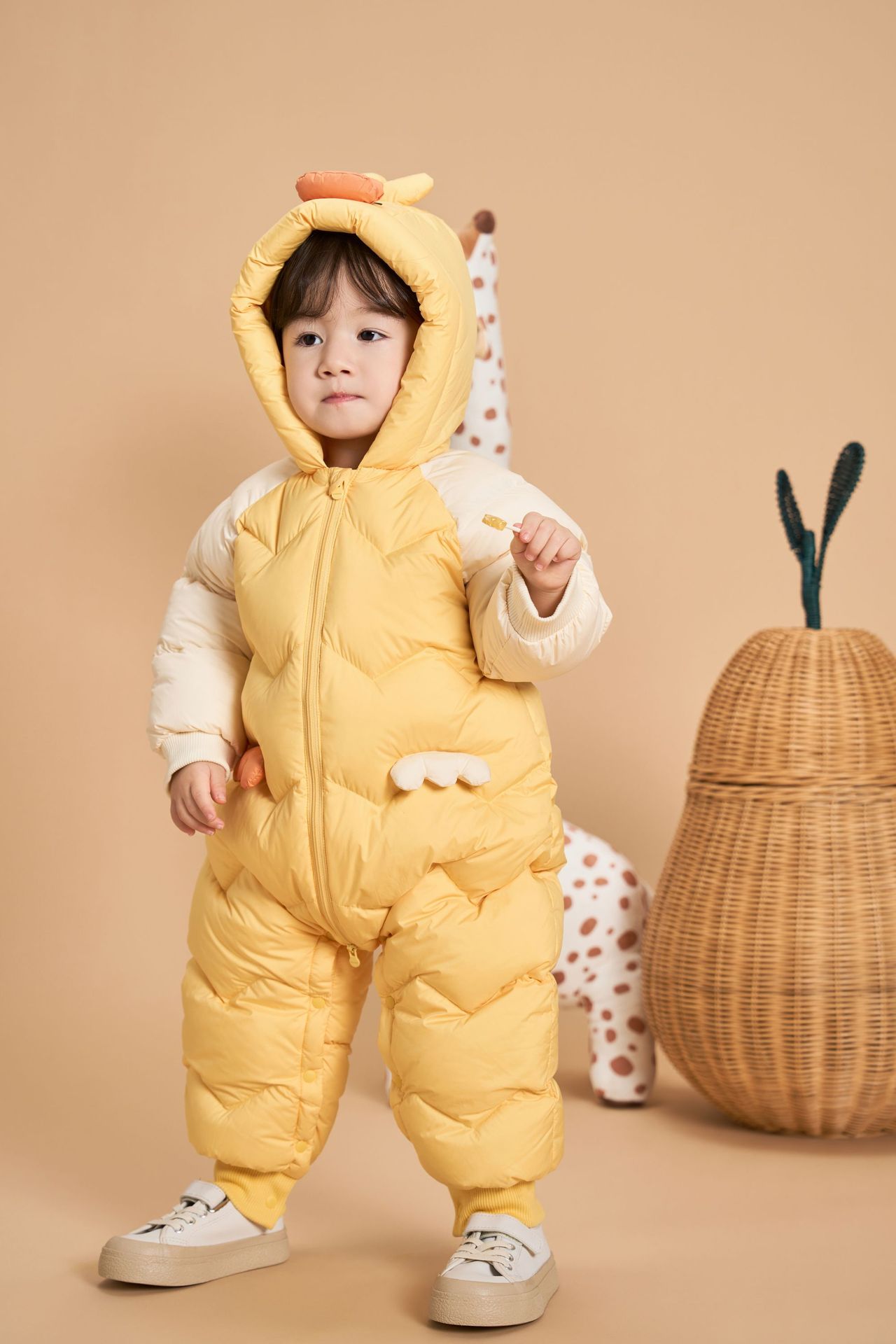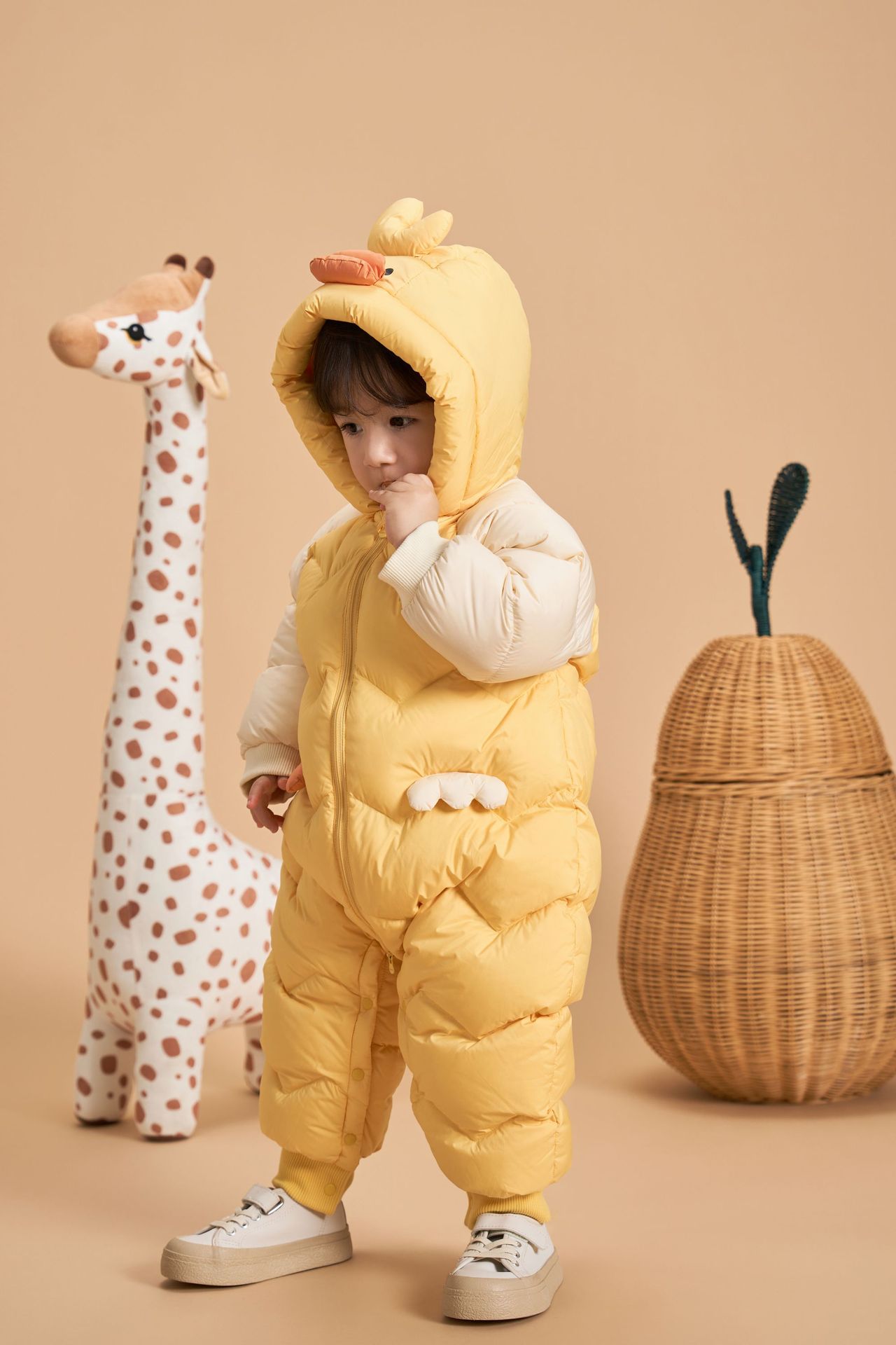 90 벨벳 노란 오리 토스트 두꺼운 등산 세트 2023 새로운 겨울 후드 다운 등산 세트 만화 귀여운 재미 입체스토어 가기