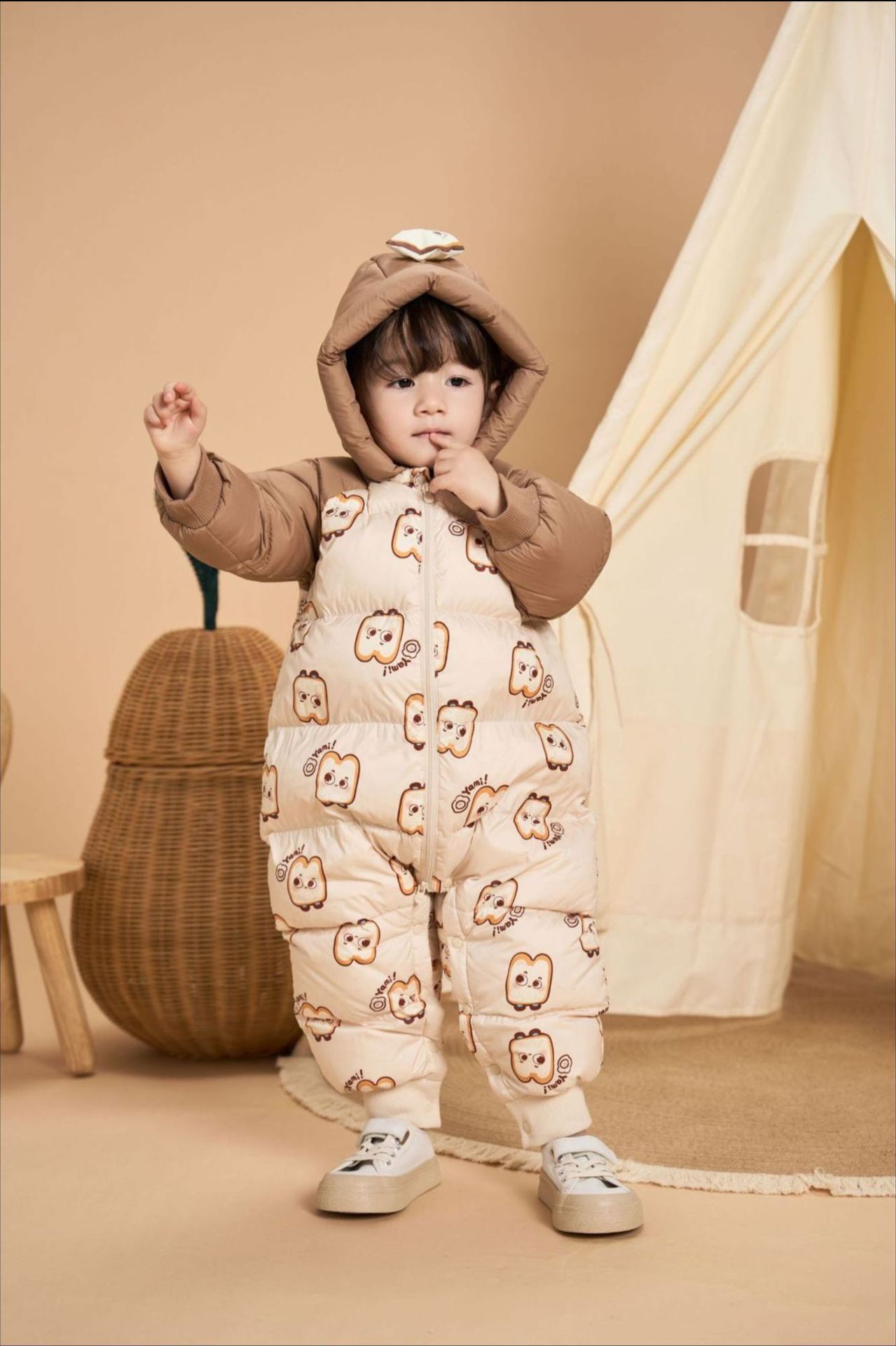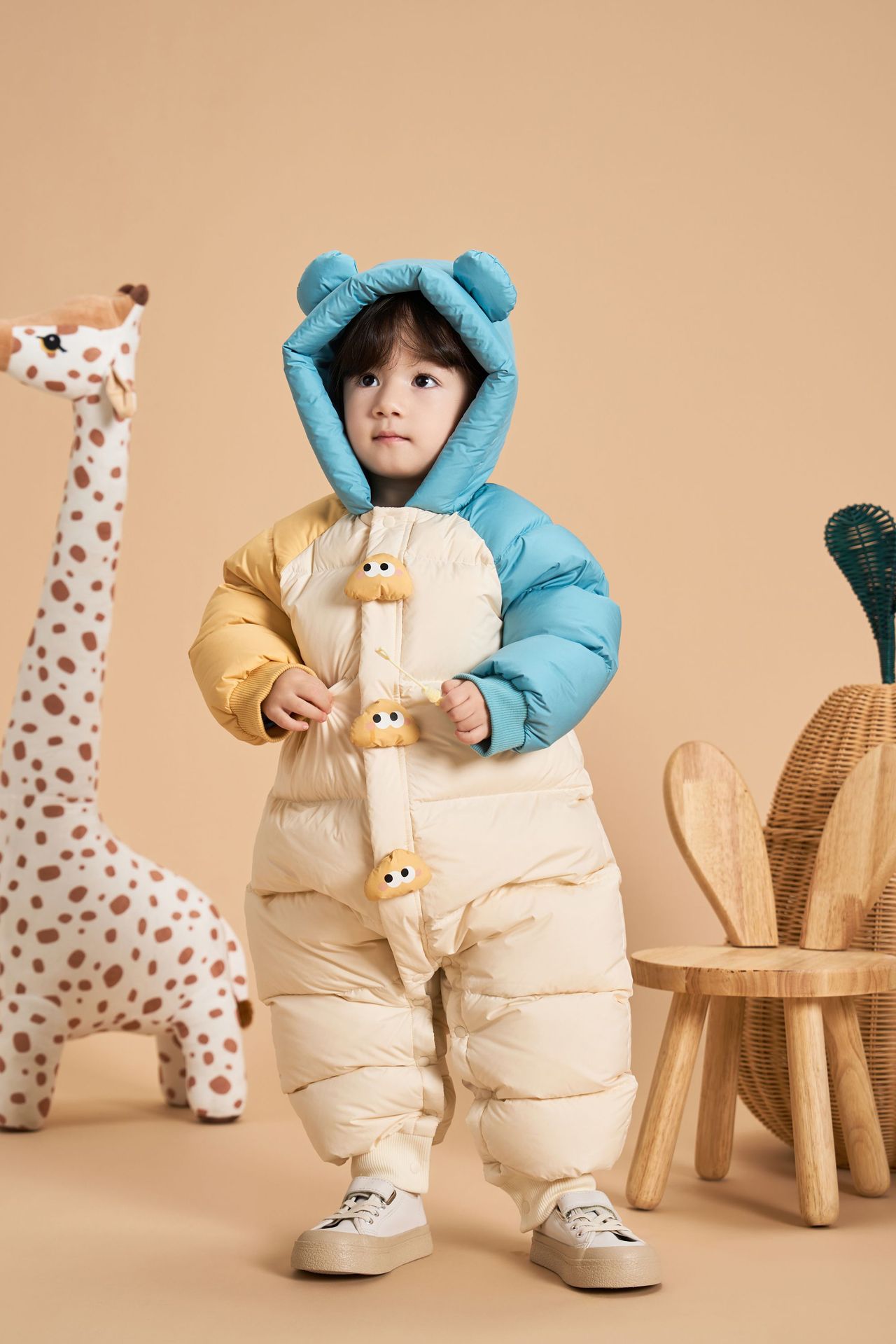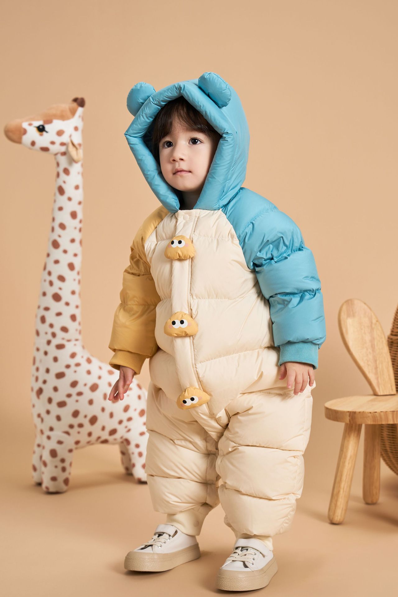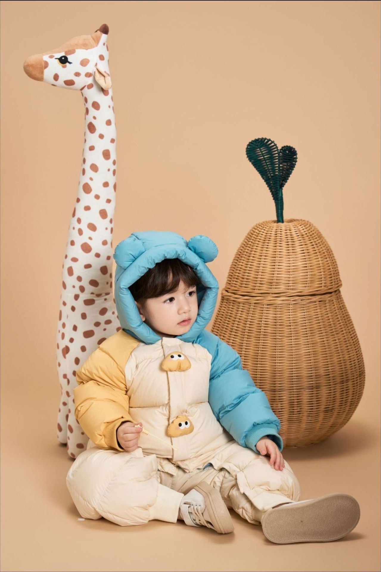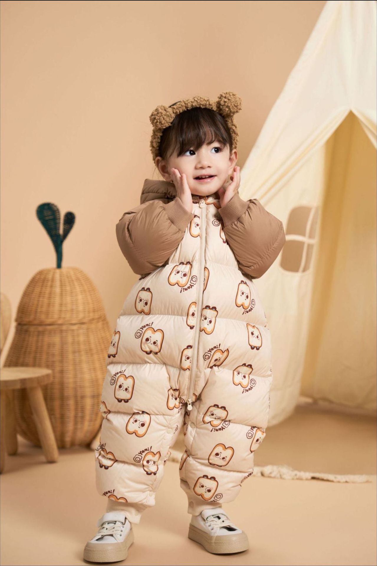 90 벨벳 노란 오리 토스트 두꺼운 등산 세트 2023 새로운 겨울 후드 다운 등산 세트 만화 귀여운 재미 입체스토어 가기