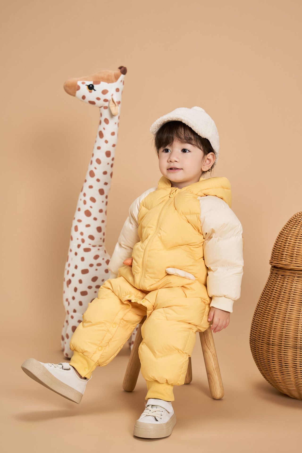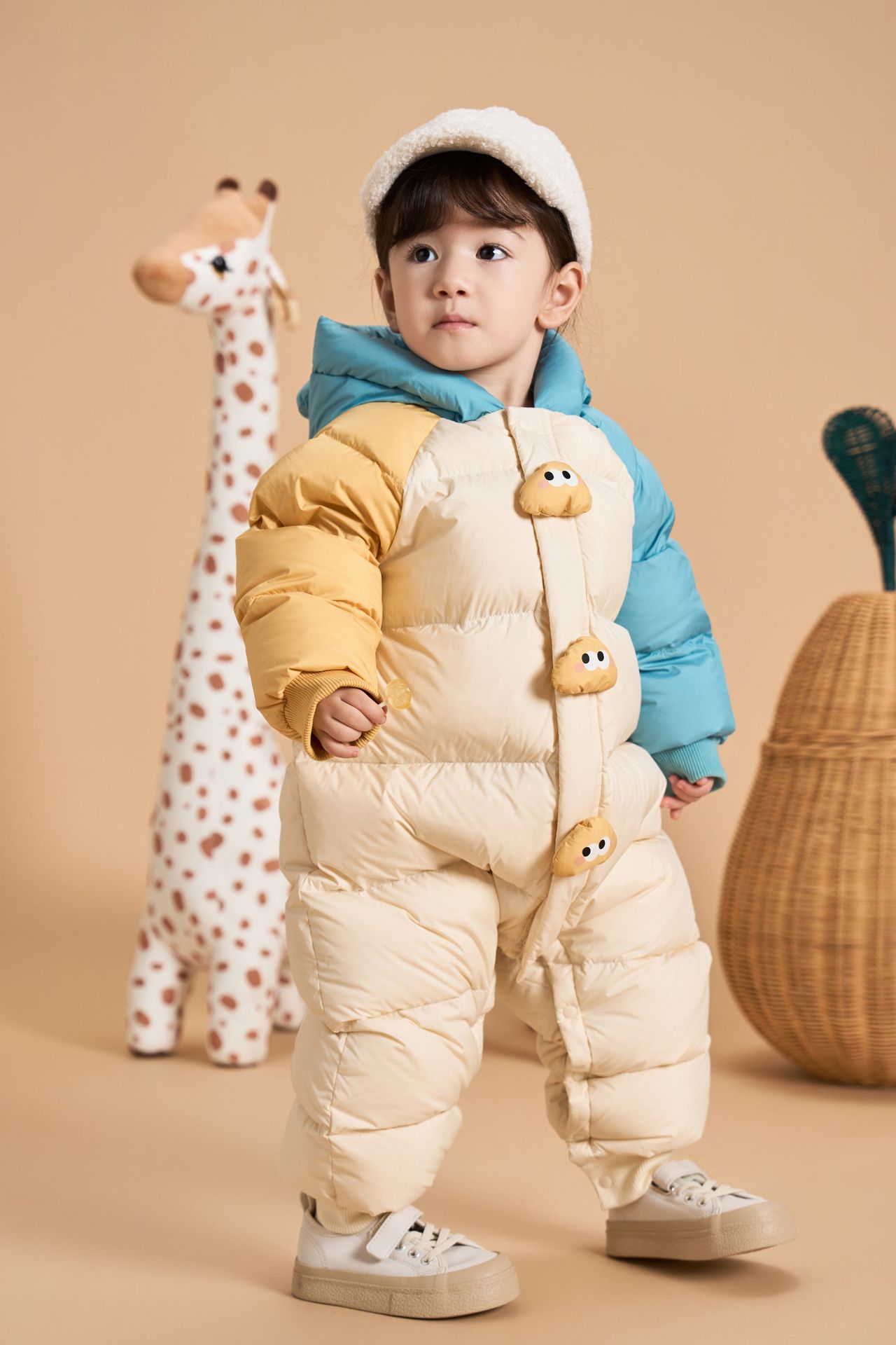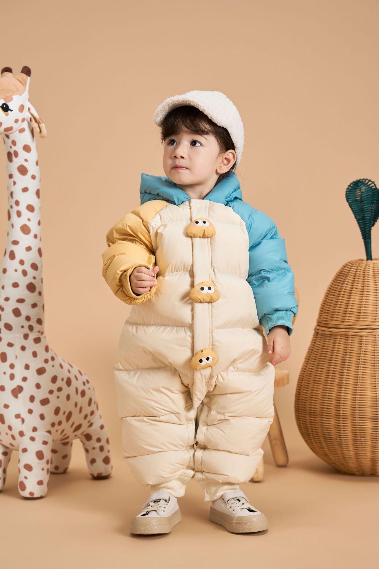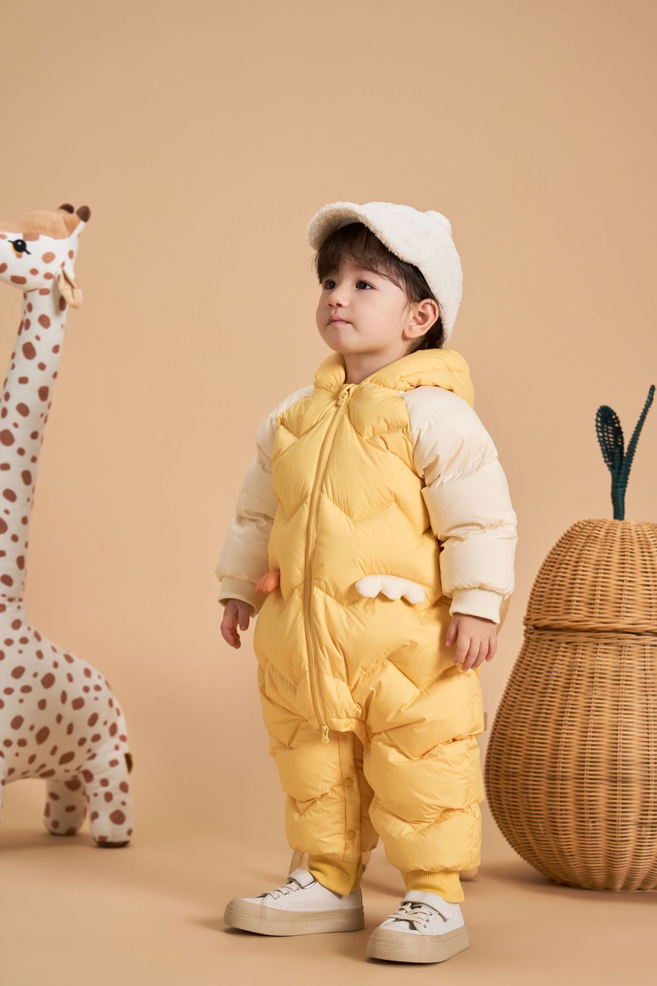 90 벨벳 노란 오리 토스트 두꺼운 등산 세트 2023 새로운 겨울 후드 다운 등산 세트 만화 귀여운 재미 입체스토어 가기