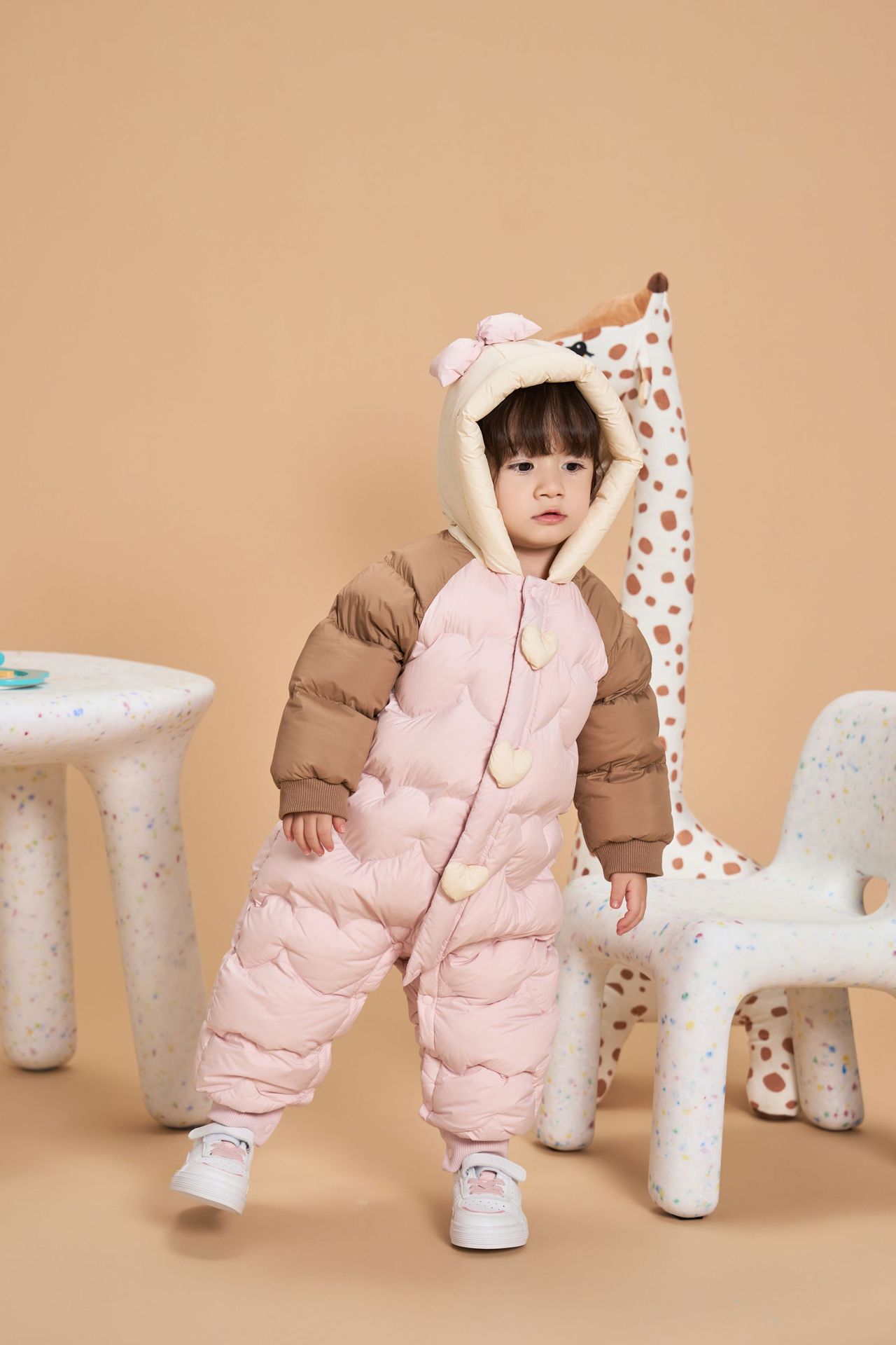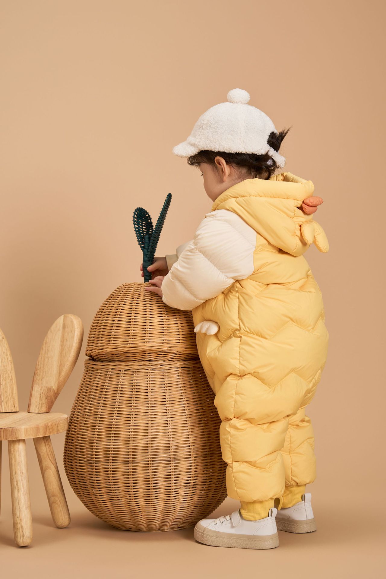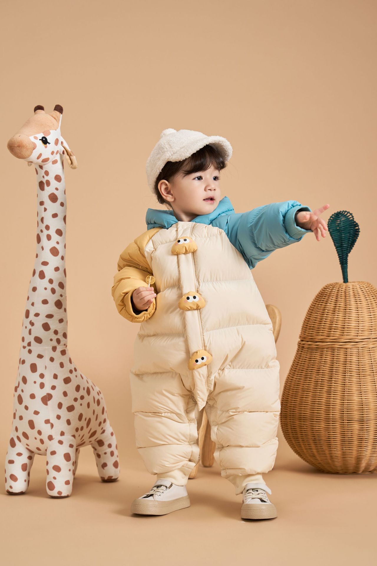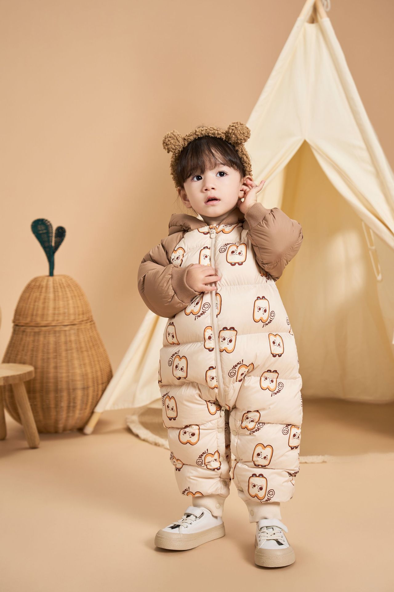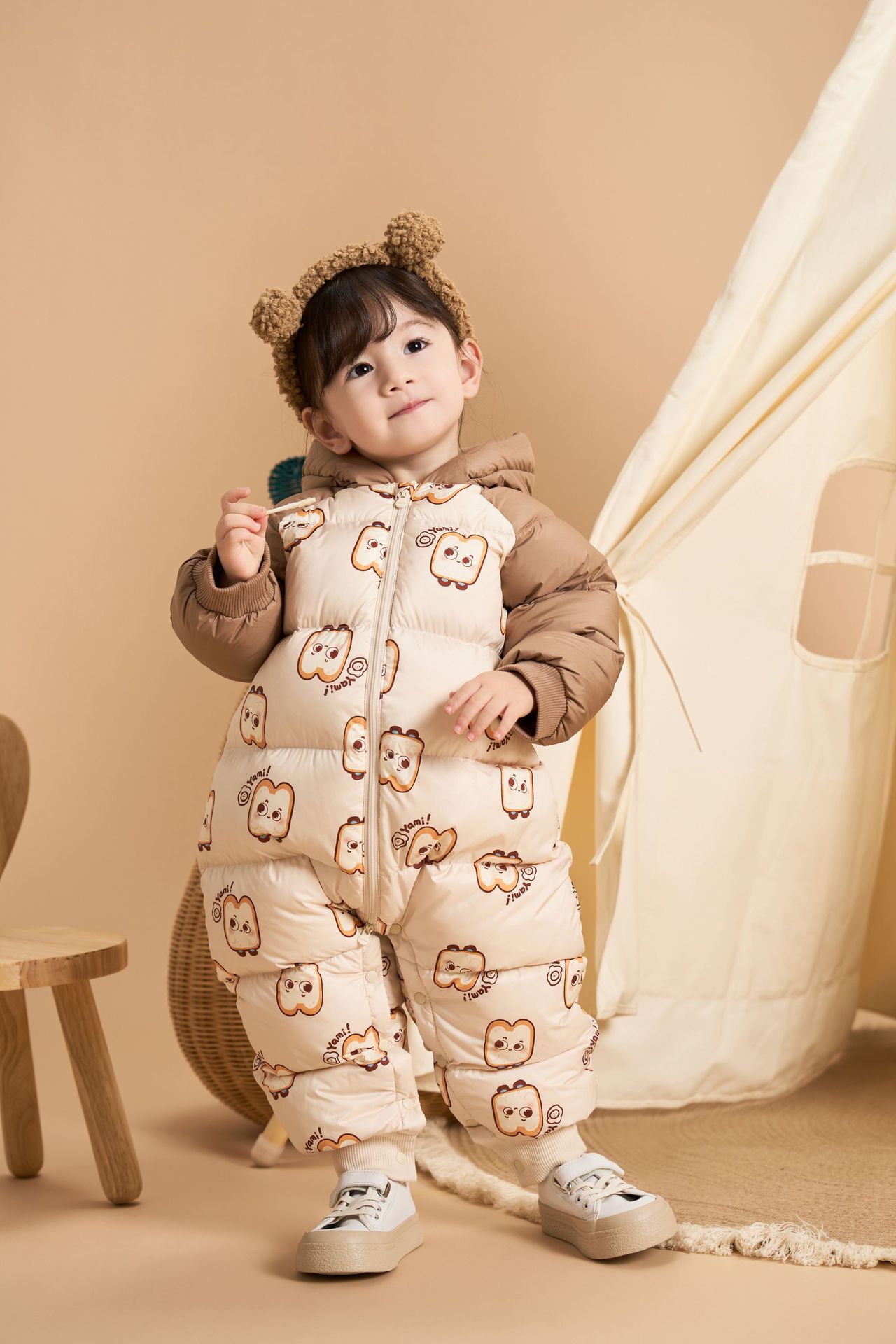 90 벨벳 노란 오리 토스트 두꺼운 등산 세트 2023 새로운 겨울 후드 다운 등산 세트 만화 귀여운 재미 입체스토어 가기