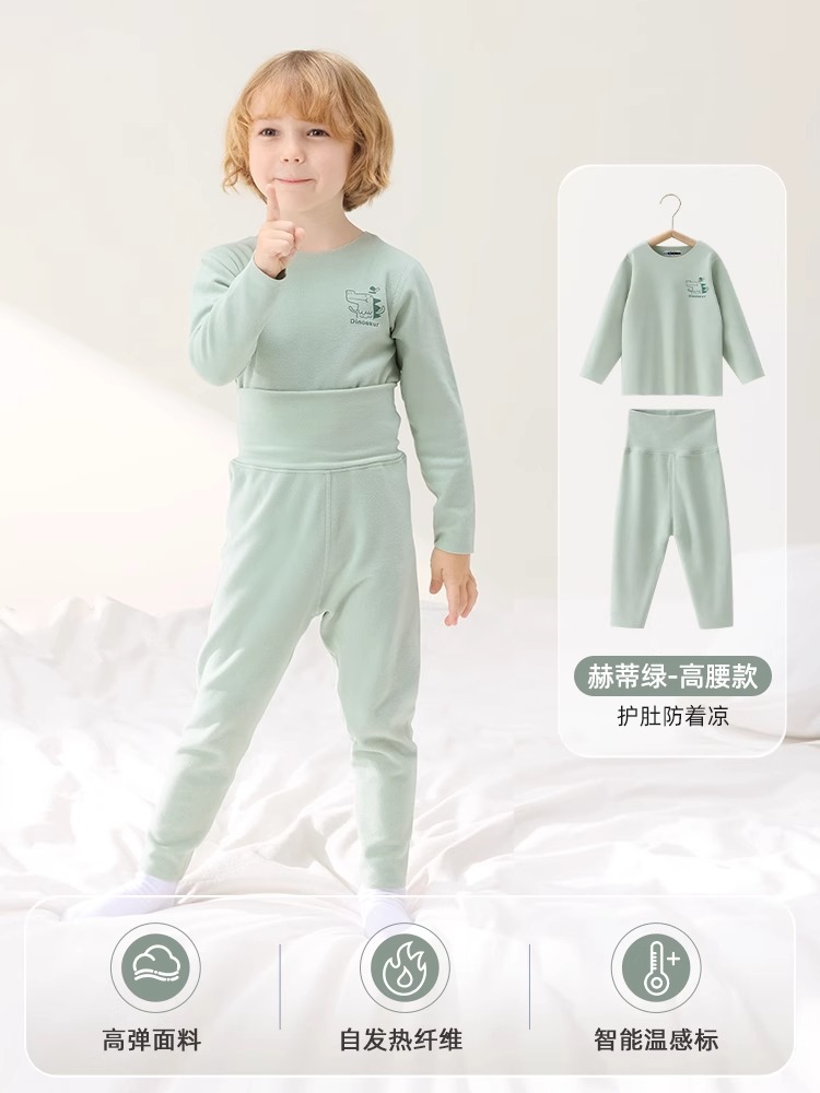 Betios 어린이 가을 옷과 바지 세트 벨벳 자체 발열 열 속옷 소년과 소녀 아기 아기 잠옷스토어 가기