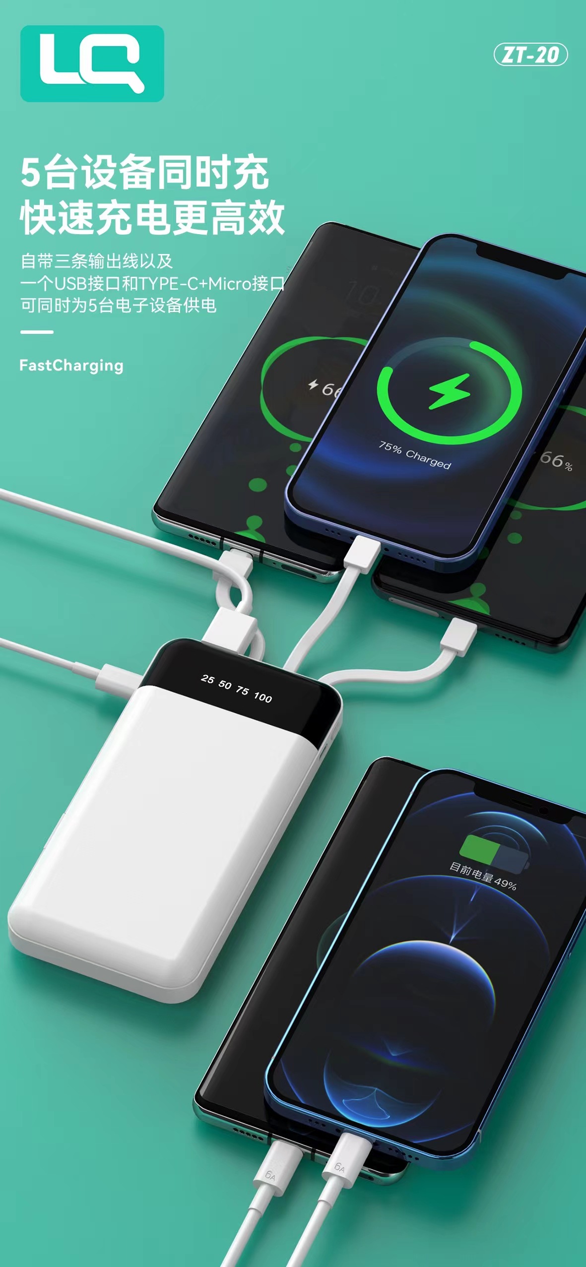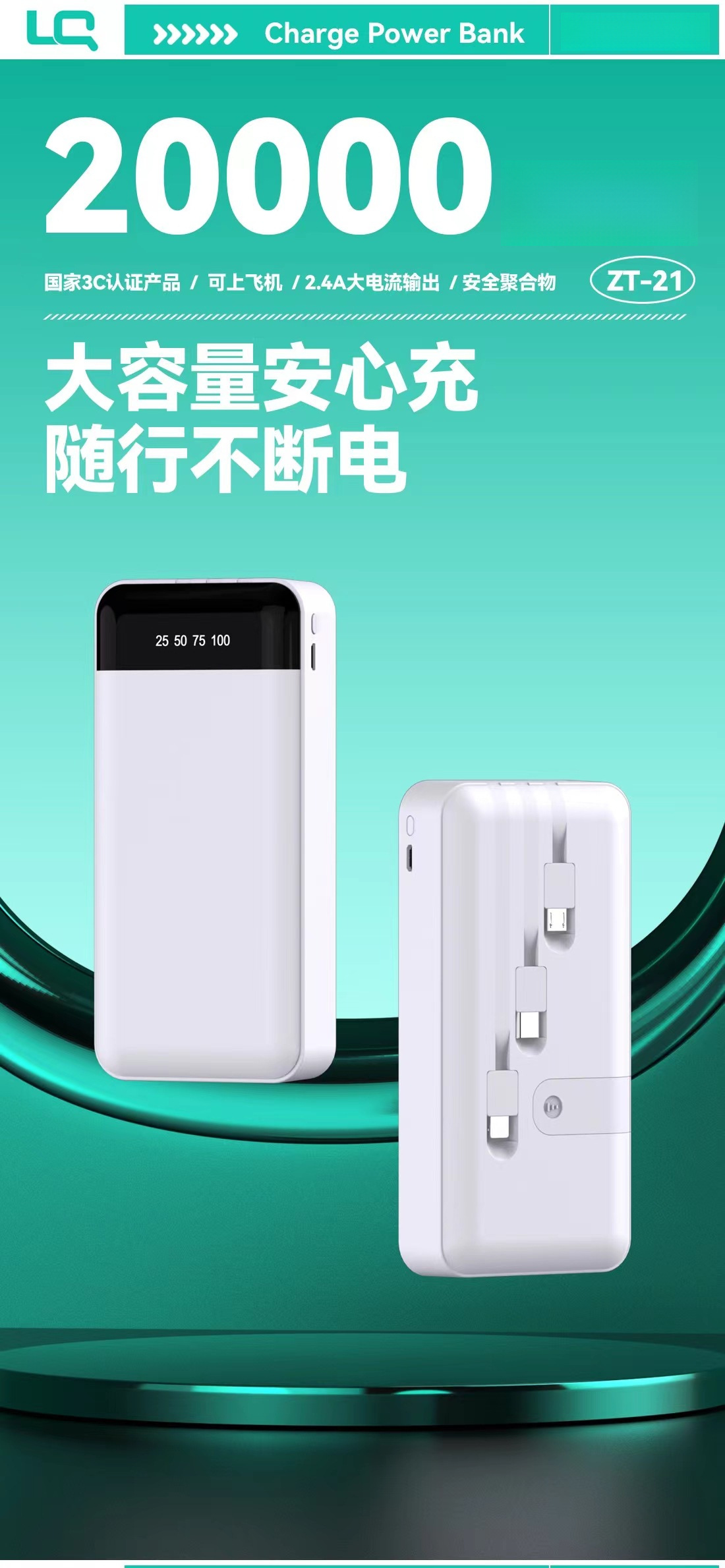 모바일 롱치 내장 케이블 3선 10000mAh 보조배터리 휴대용 고속충전 2만 대용량 디지털 디스플레이 초대형 모바일 파워뱅크