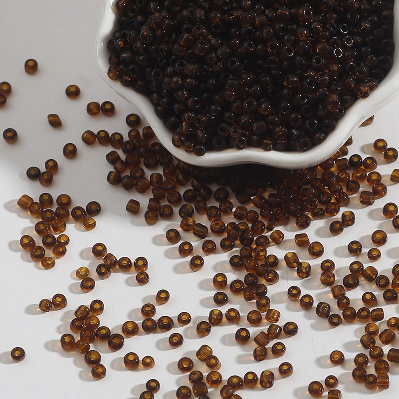 • 투명 유리 쌀 구슬 다크 레드