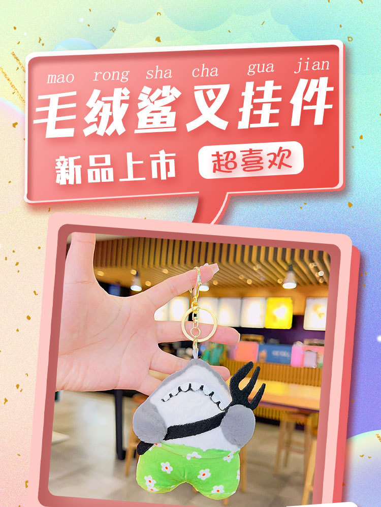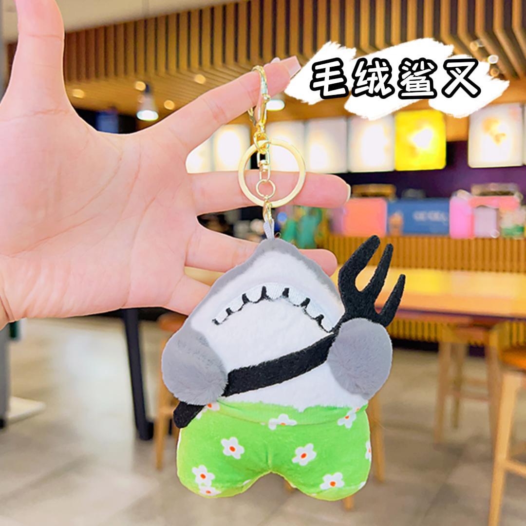 만화 상어 인형 봉제 열쇠 고리 매달려 장식품 도매 귀여운 파악 기계 인형 작은 보석 책가방 펜던트 선물스토어 가기