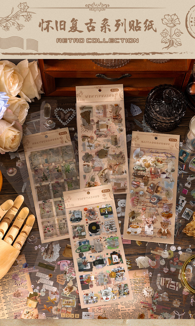 레트로 향수 스티커 창조적 인 손 계정 스티커 방수 PVC 고급 미국 스티커 소재 어린이 스티커 가방스토어 가기