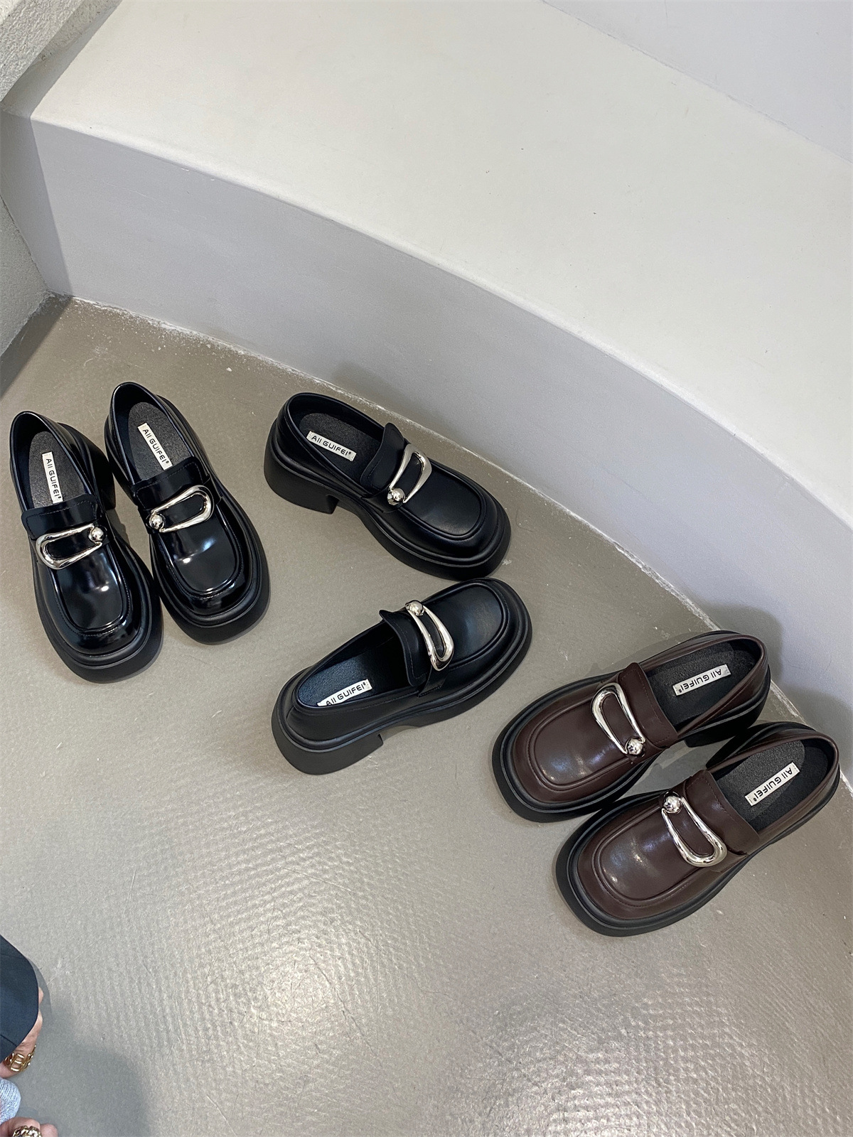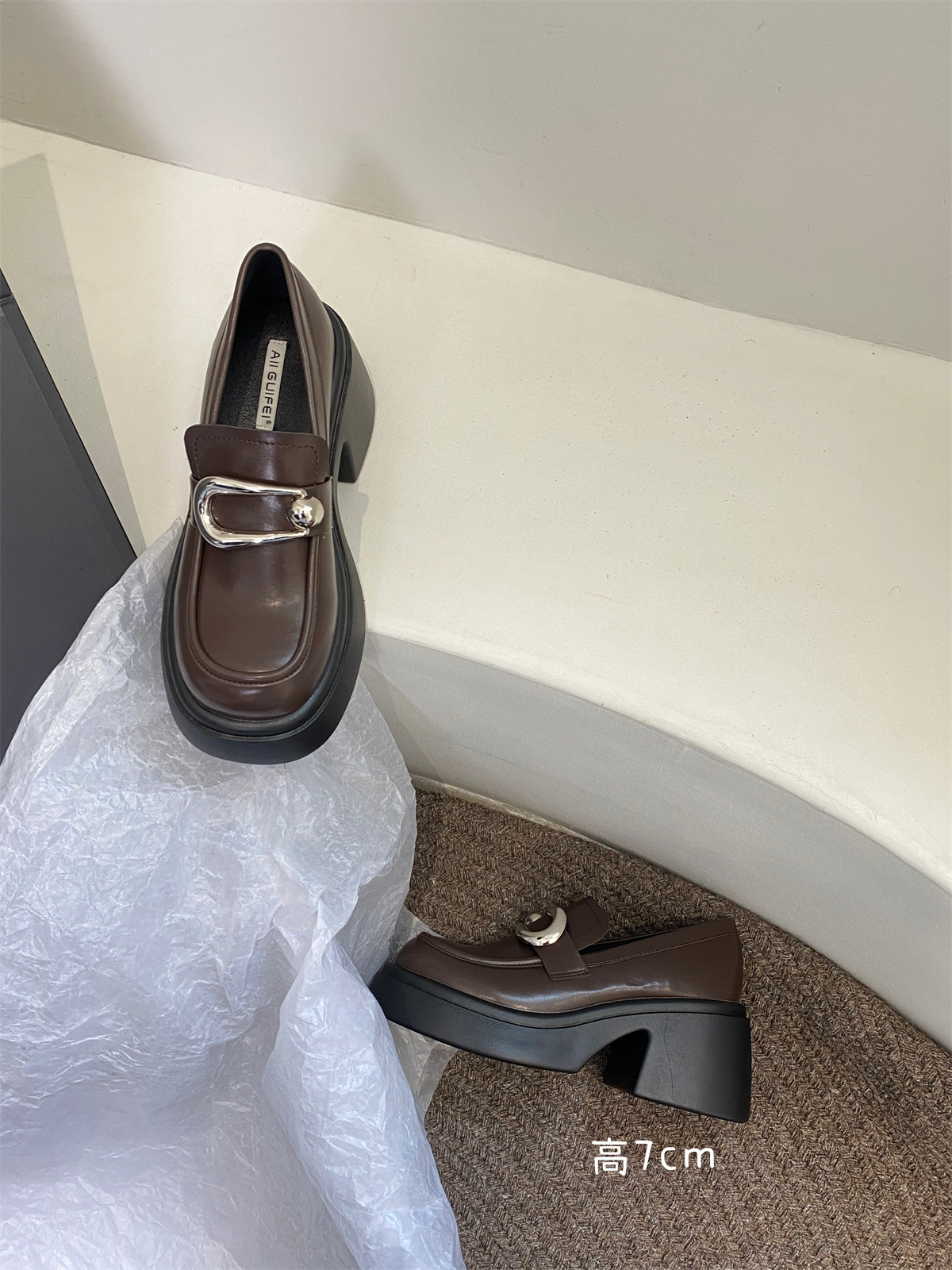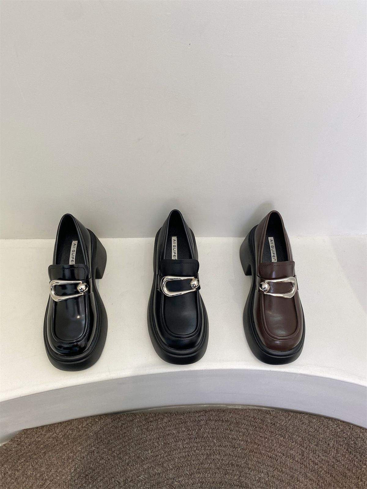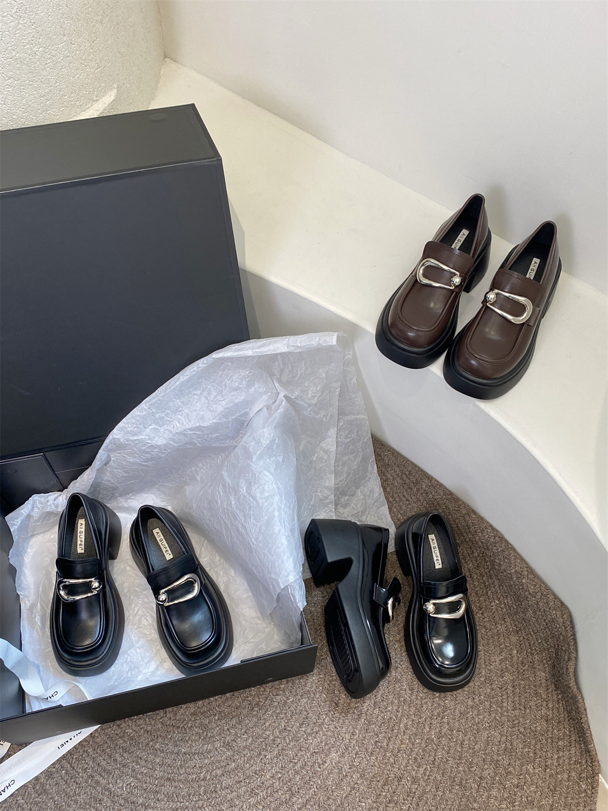 빈티지 두꺼운 밑창 높이 증가 작은 가죽 신발 여성 가을 2023 새로운 영국 스타일 로퍼 Mary Jane 단층 신발 여성 신발스토어 가기
